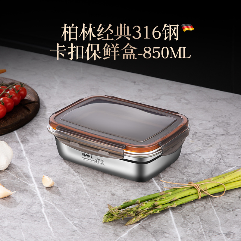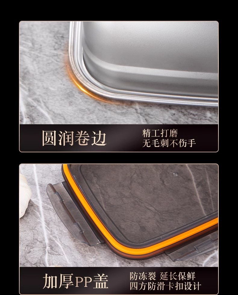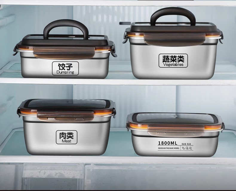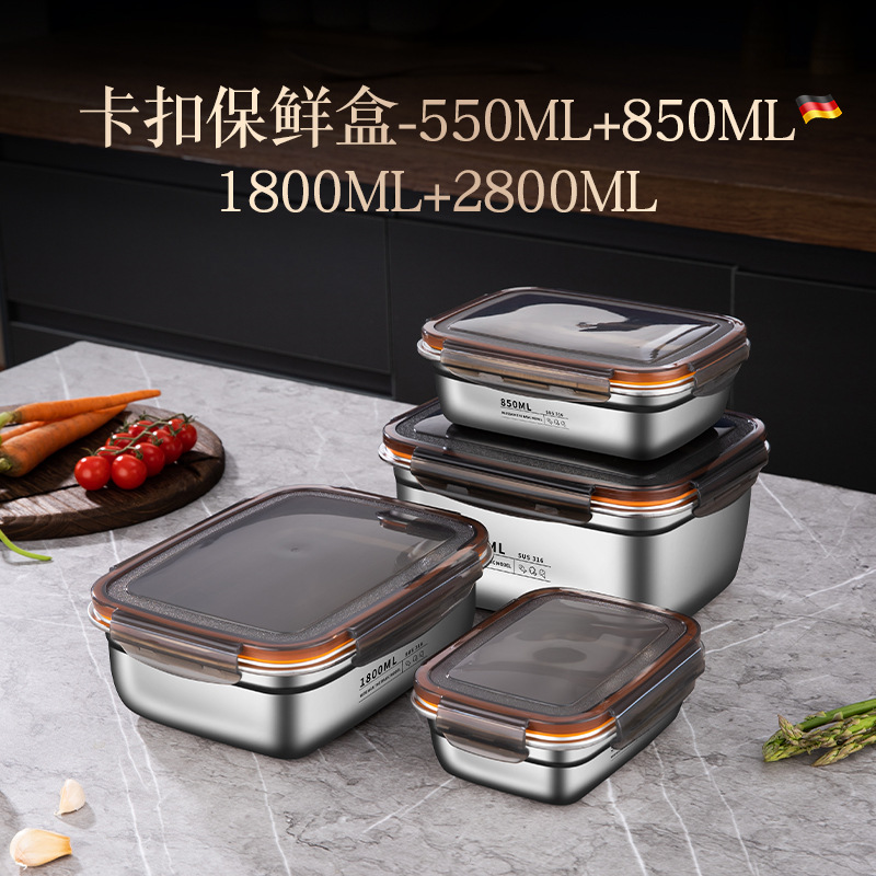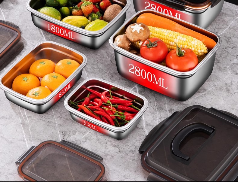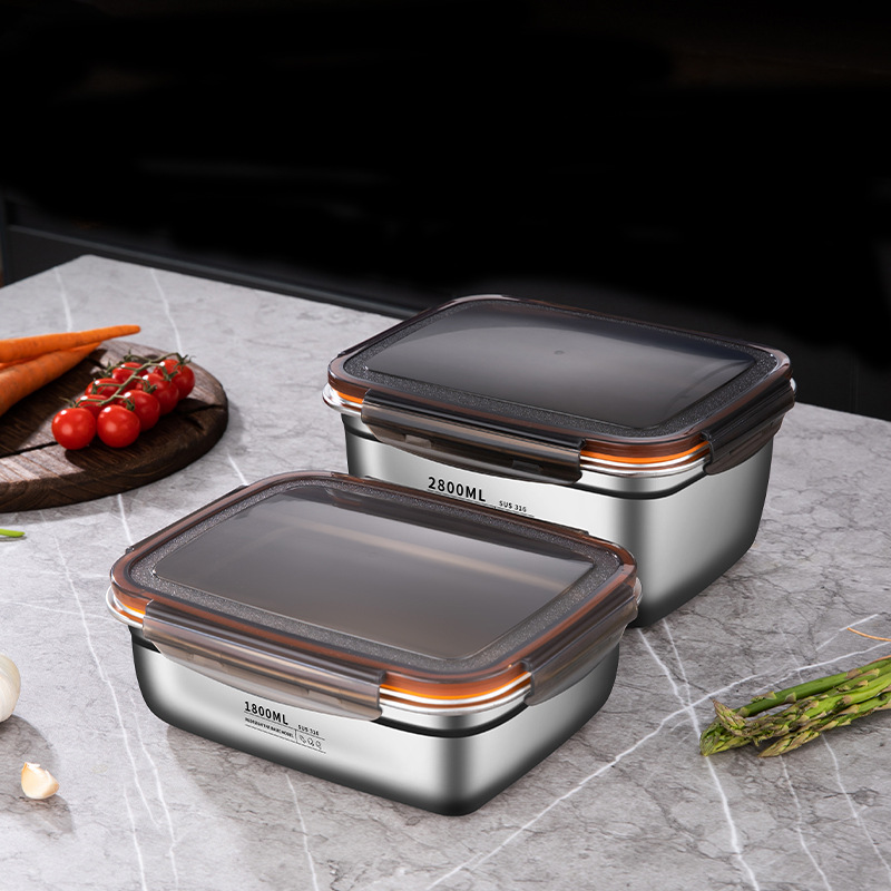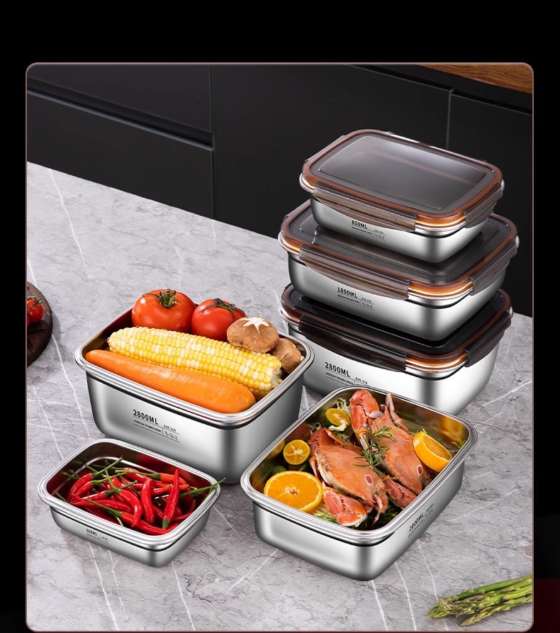 스테인레스 스틸 보존 상자 스냅 봉인 상자 냉장고 내열성 직사각형 과일 저장 상자 도시락