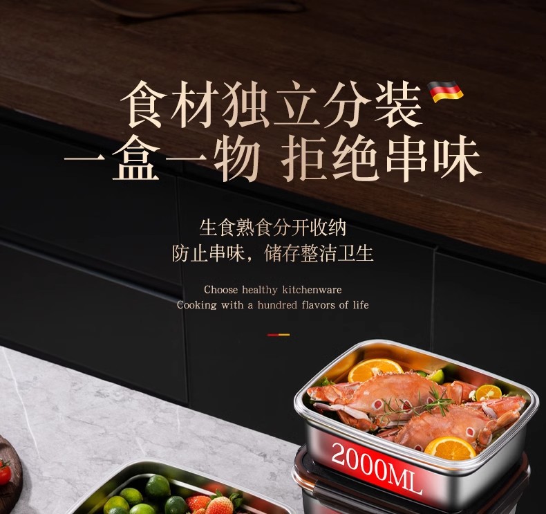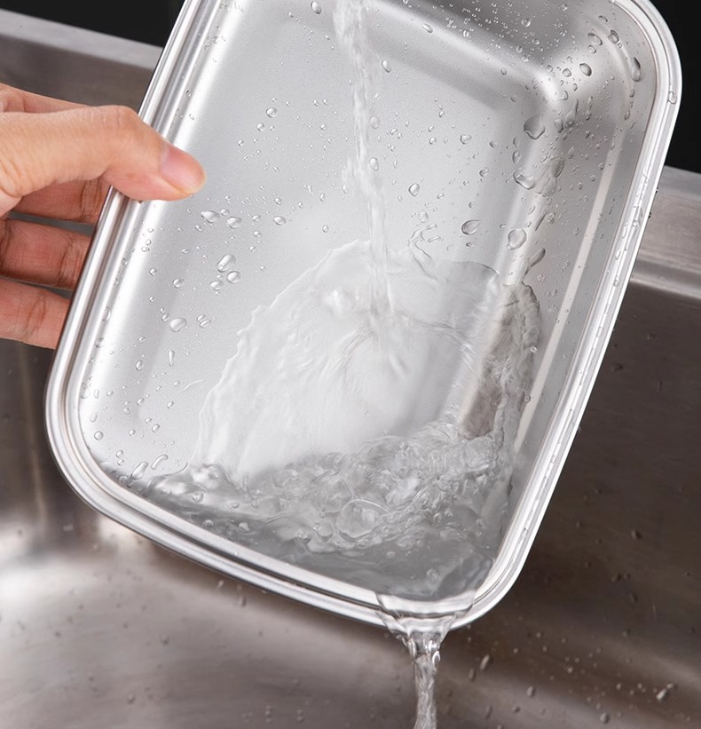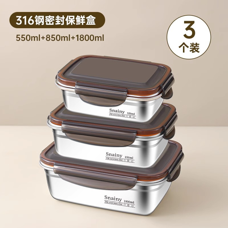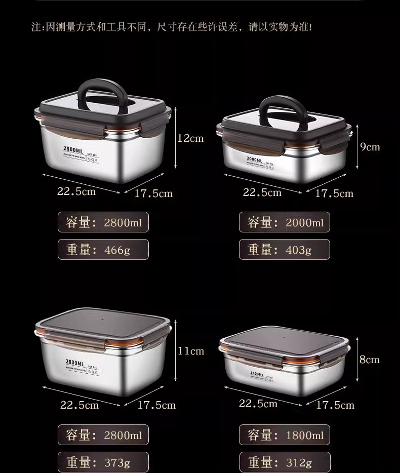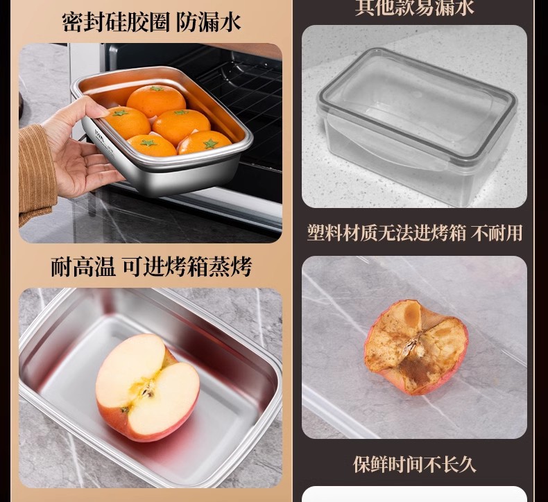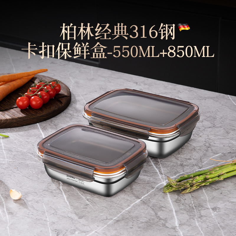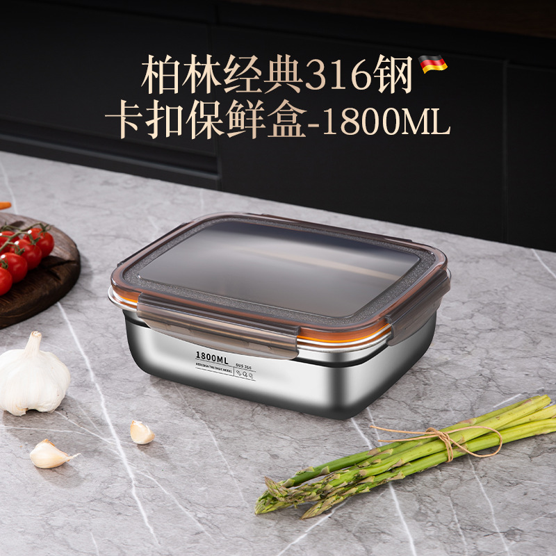 스테인레스 스틸 보존 상자 스냅 봉인 상자 냉장고 내열성 직사각형 과일 저장 상자 도시락