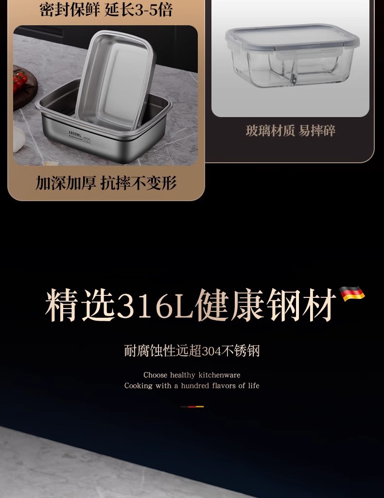 • 두꺼운 스테인레스 스틸 [1800ml] 냉장/냉동/오븐 사용 가능