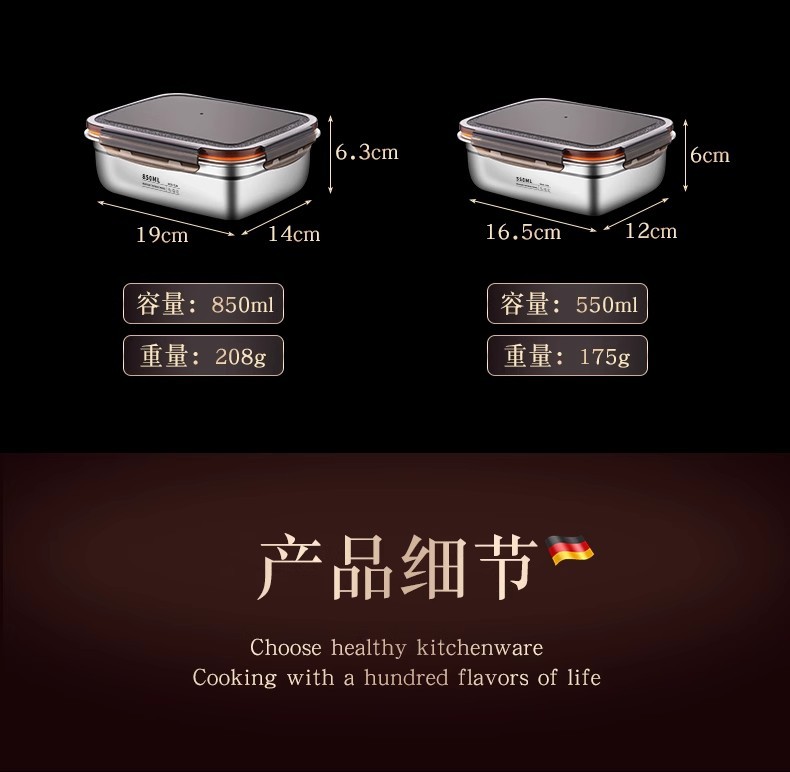 • 두꺼운 스테인리스 스틸 [850ml] 냉장/냉동/오븐 사용 가능