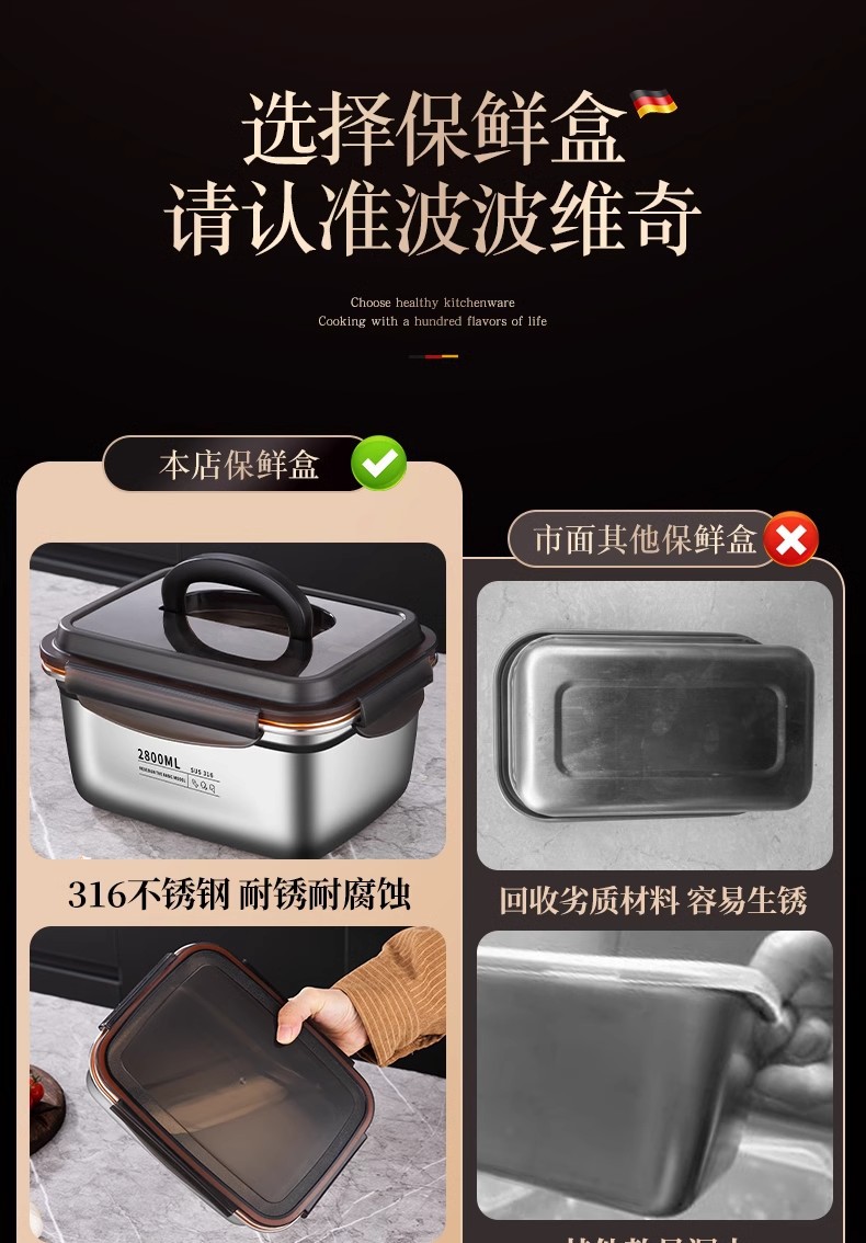 • 두꺼운 스테인레스 스틸 [2800ml] 냉장/냉동/오븐 사용 가능