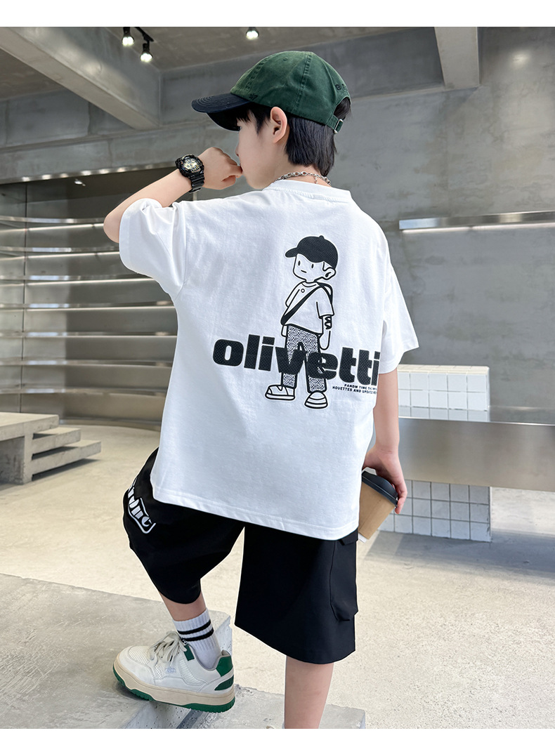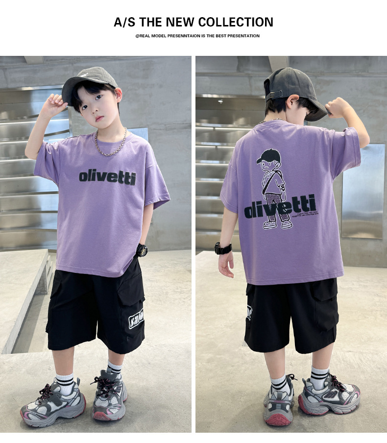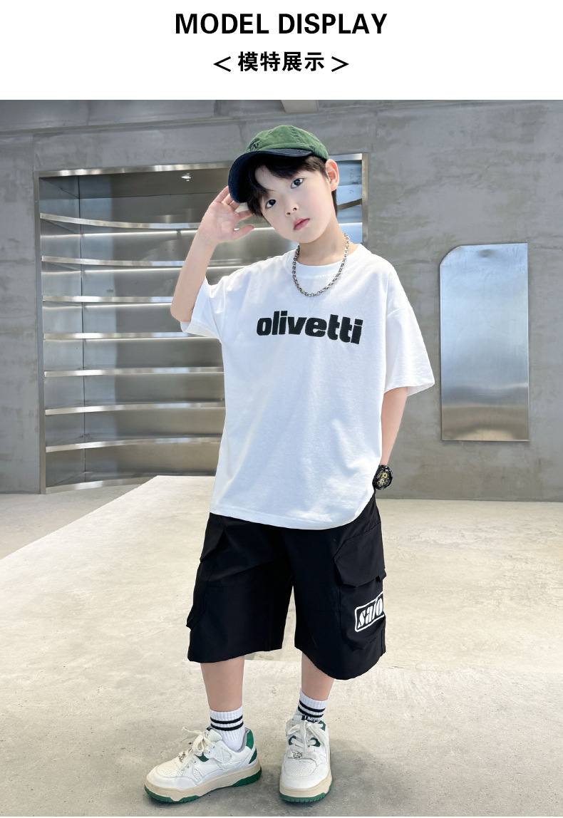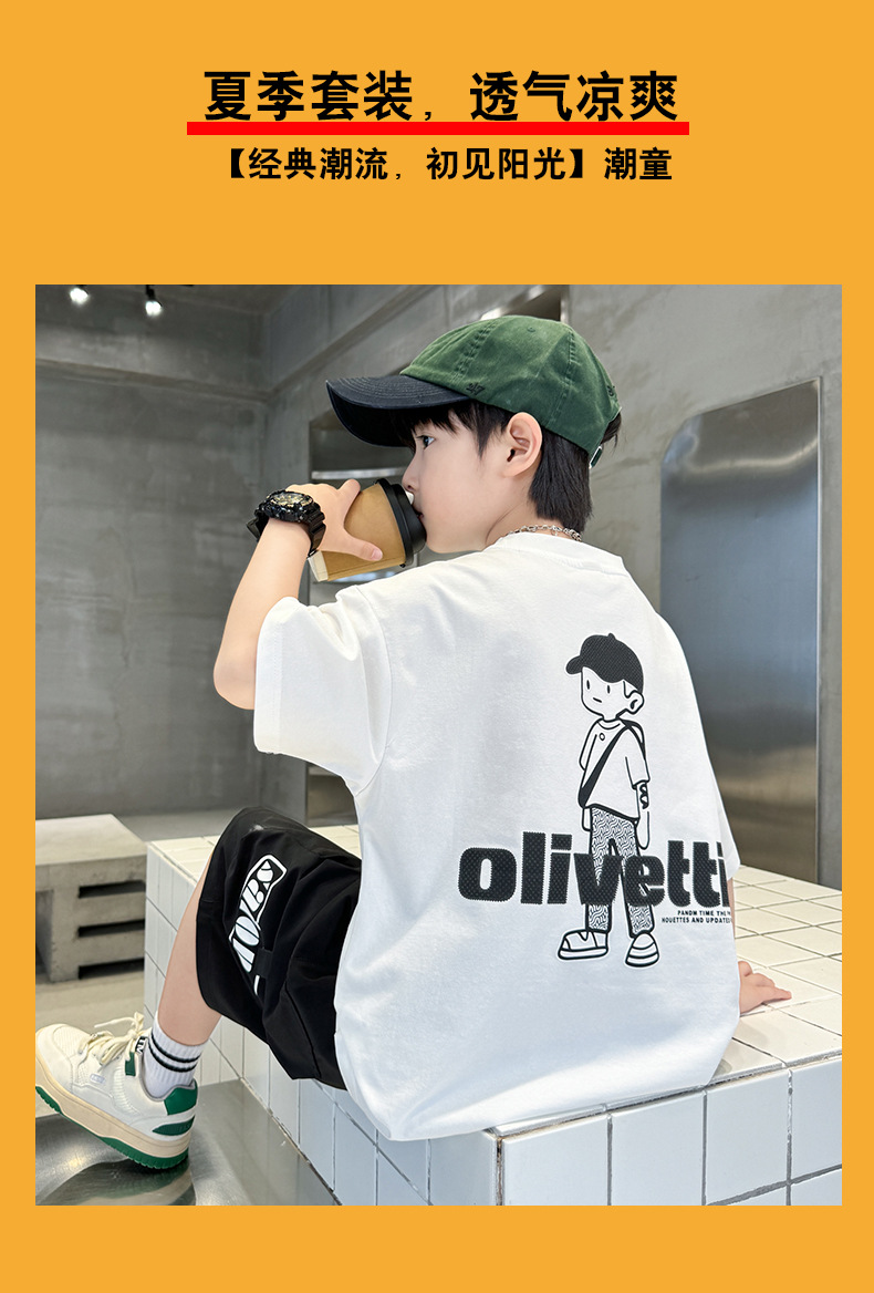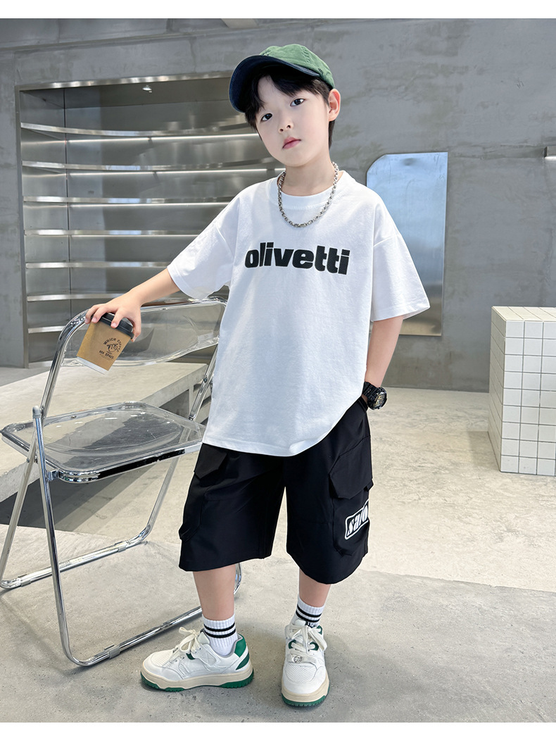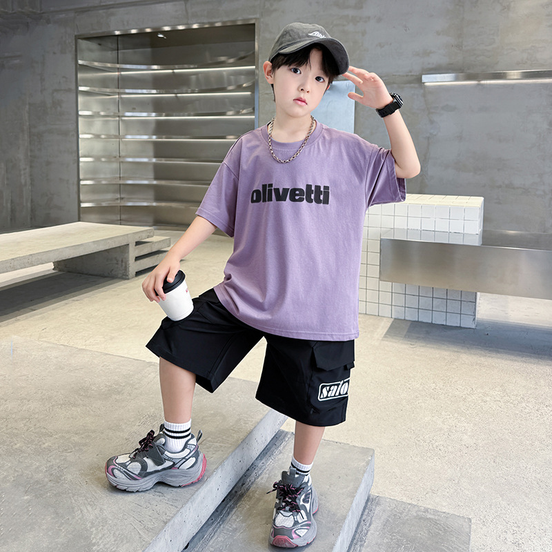 아동복 소년 여름 세트 2025 새로운 어린이 스포츠 레저 편지 반팔 크레인 바지 투피스 세트스토어 가기