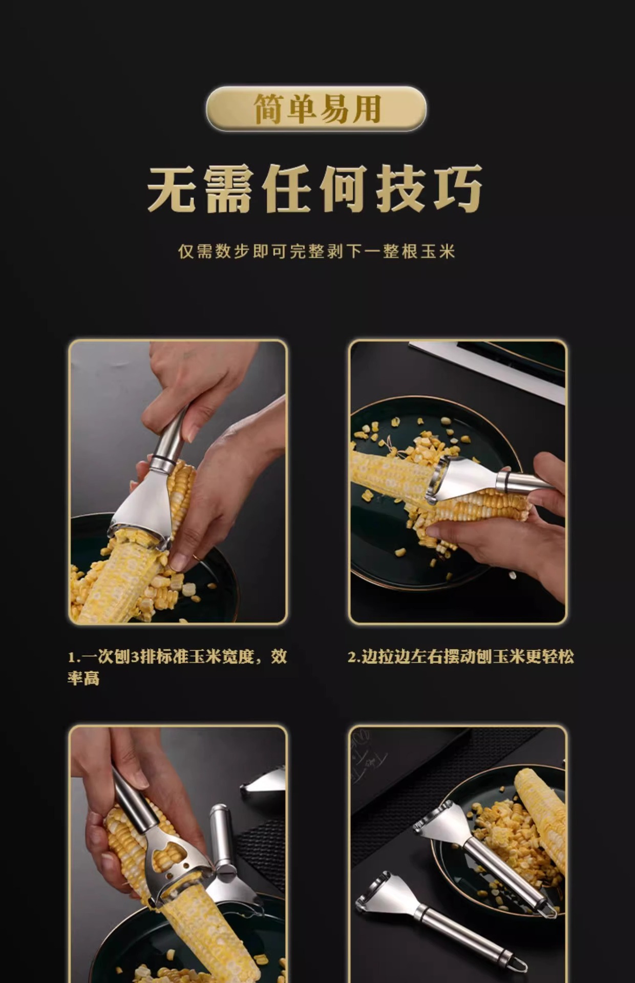 두꺼운 스테인레스 스틸 옥수수 비행기 탈선 Graner 옥수수 벗기기 인공물 주방 가정용 옥수수 절단 칼스토어 가기