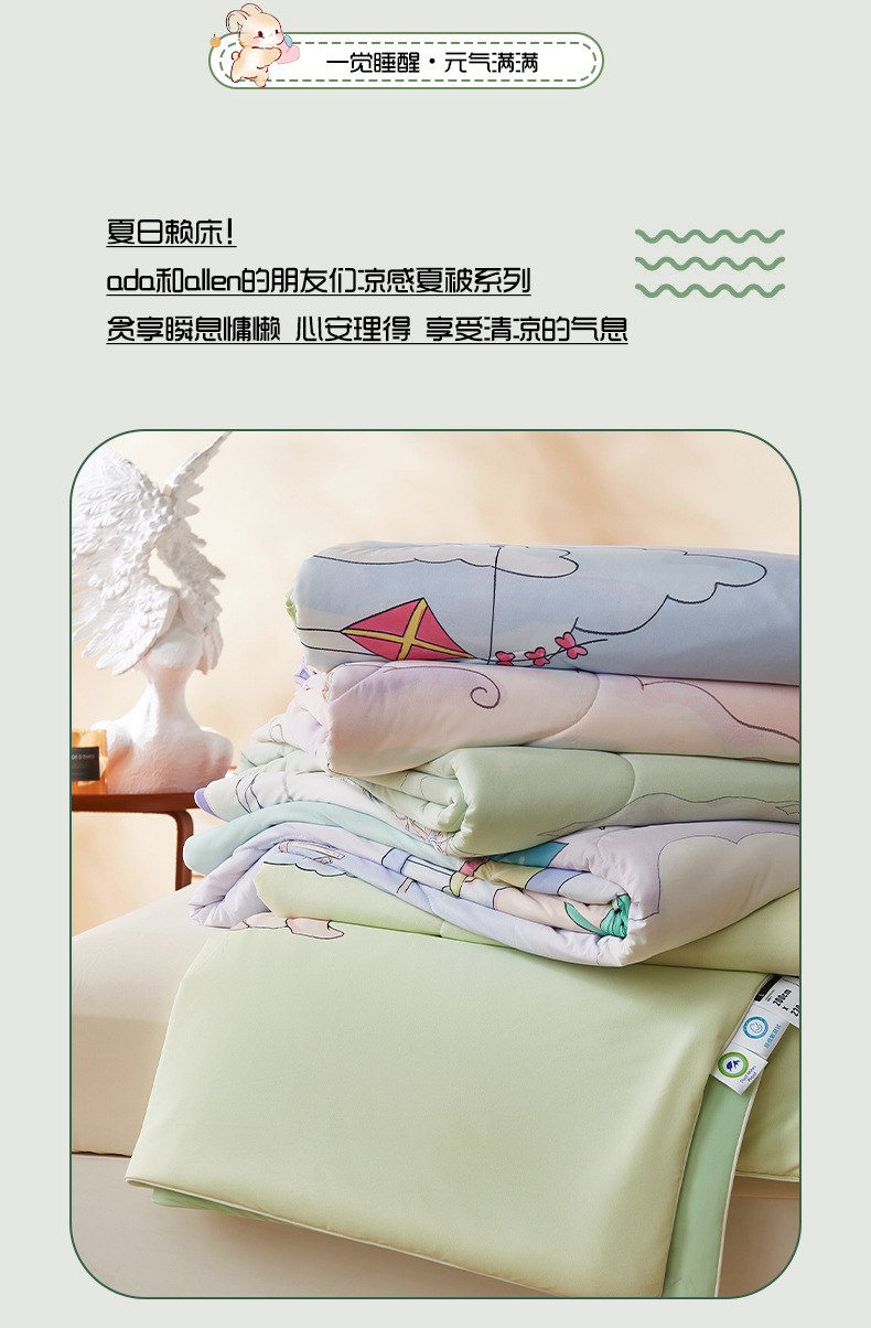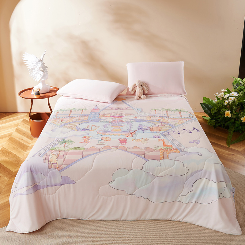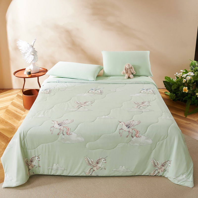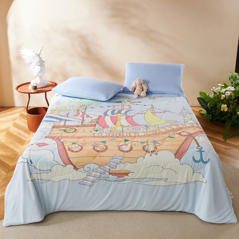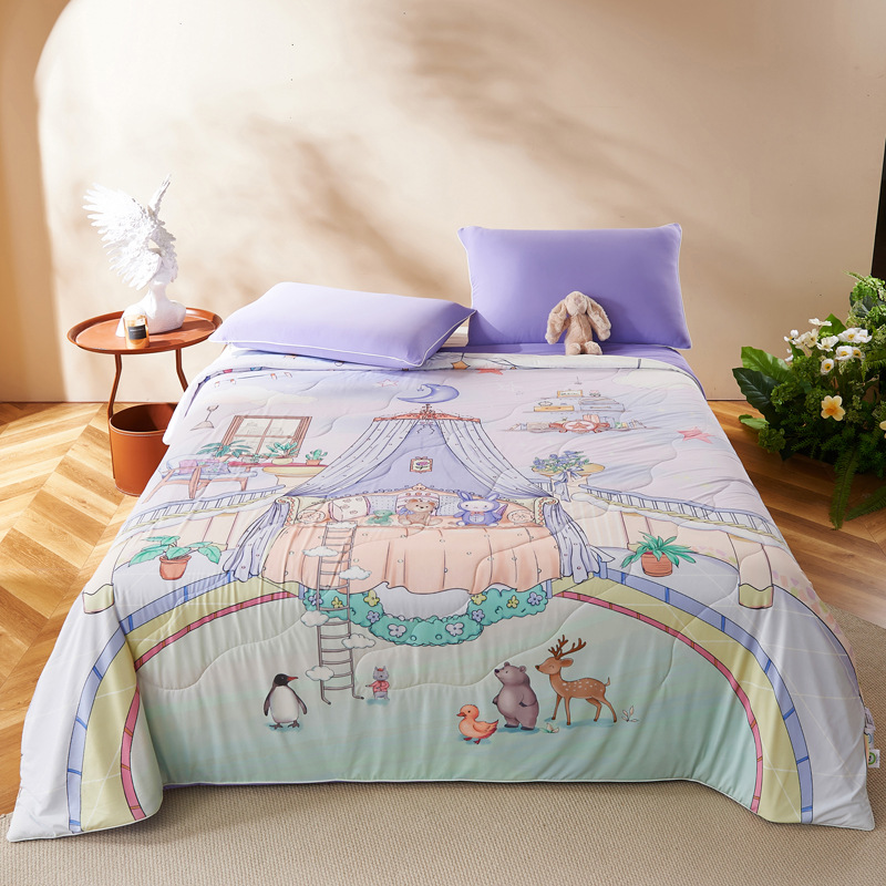 만화 시원한 실크 어린이 여름 이불 유치원 싱글 여름 이불 에어컨 이불 기계 세탁 가능한 이불 여름 얇은 스타일