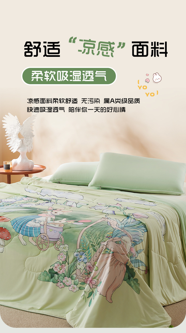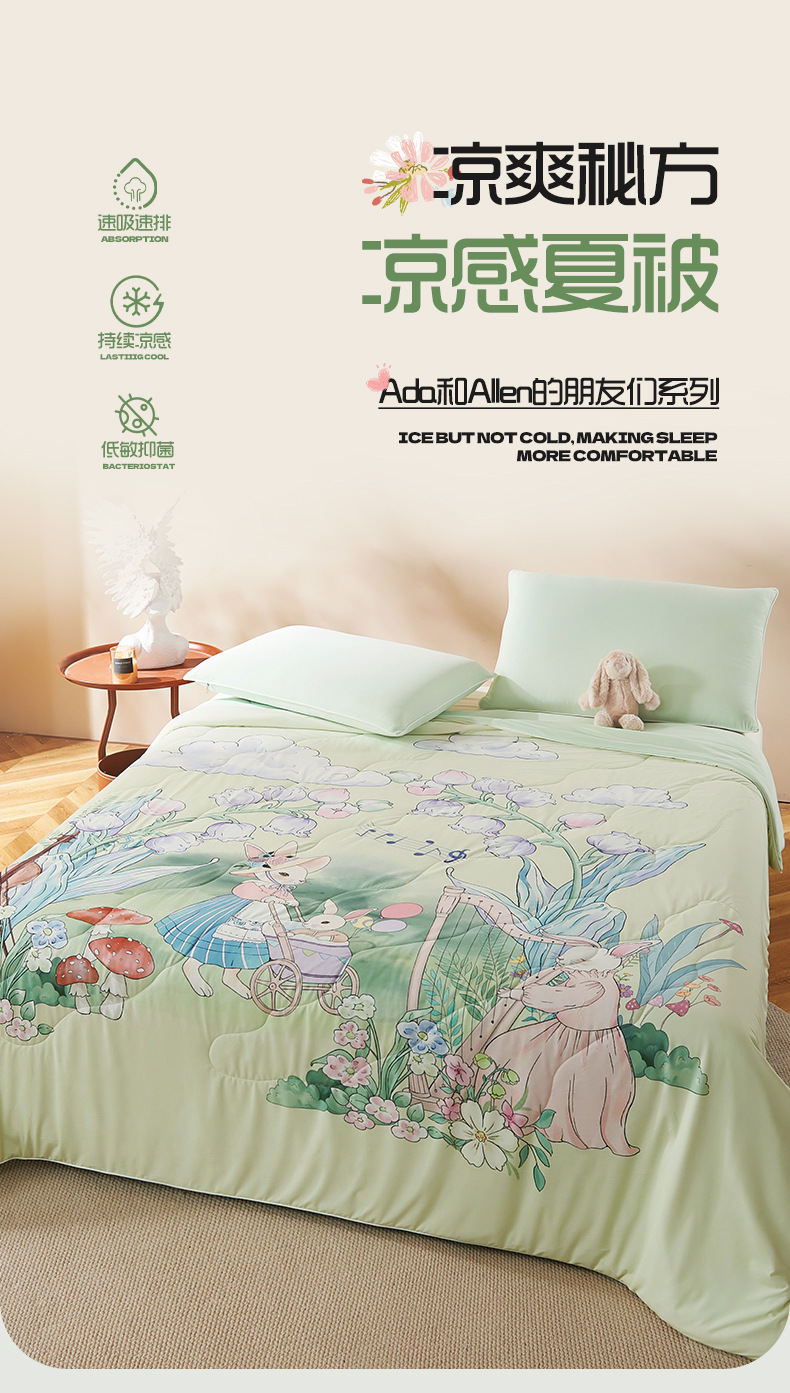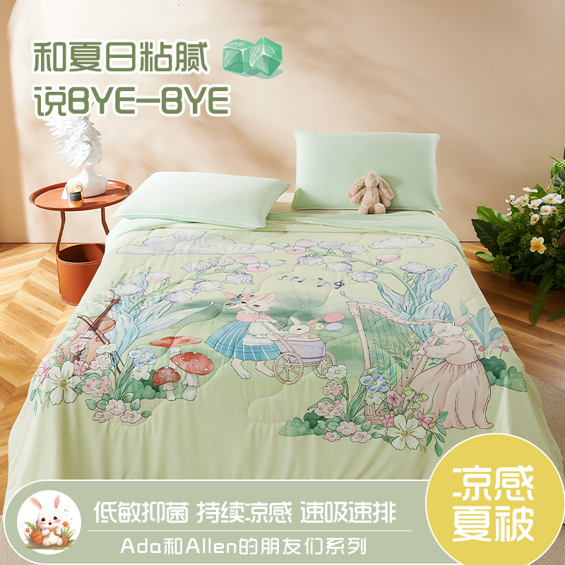 만화 시원한 실크 어린이 여름 이불 유치원 싱글 여름 이불 에어컨 이불 기계 세탁 가능한 이불 여름 얇은 스타일