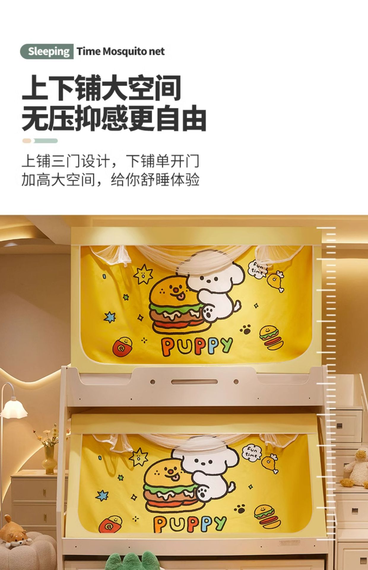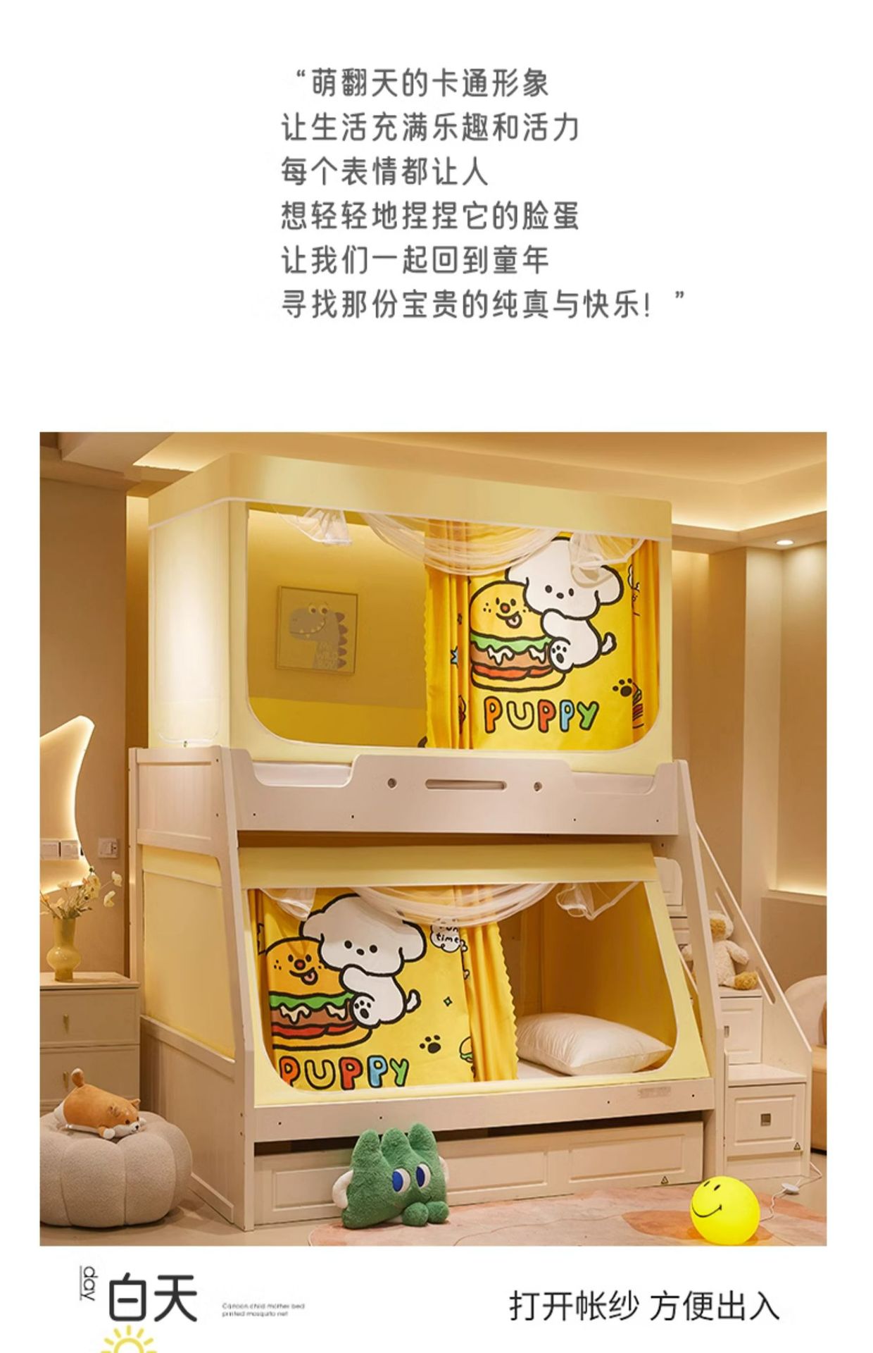 이층침대 모기장 침실용 가정용 2025년형 신제품 유아 어린이 낙상방지 침대커튼 일체형