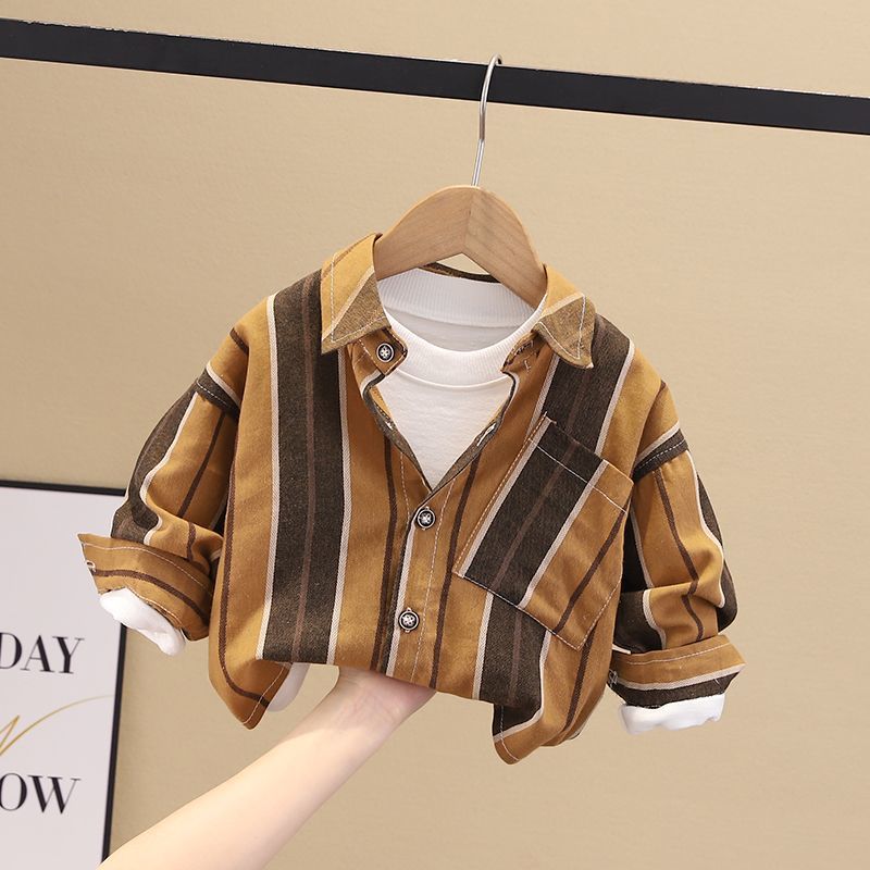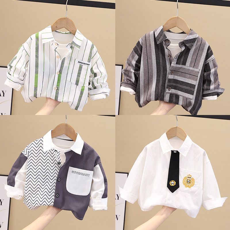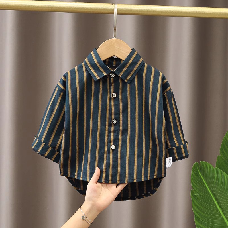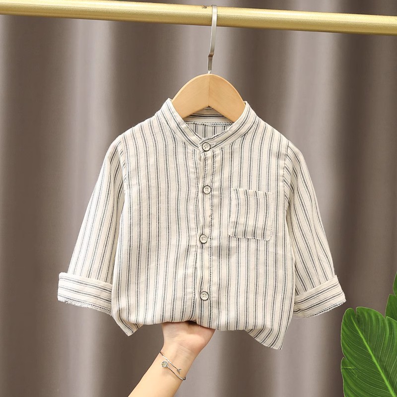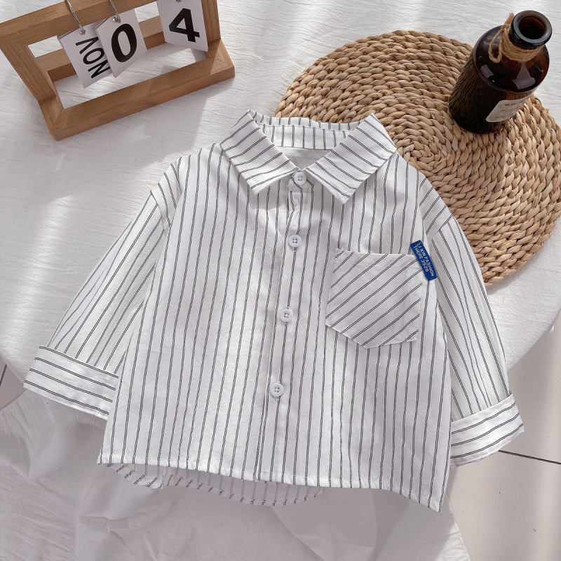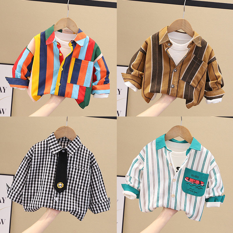 남학생 면 셔츠 얇은 긴팔 어린이 봄 가을 어린이 의류 아기 재킷 아기 코트 어린이 줄무늬 셔츠스토어 가기