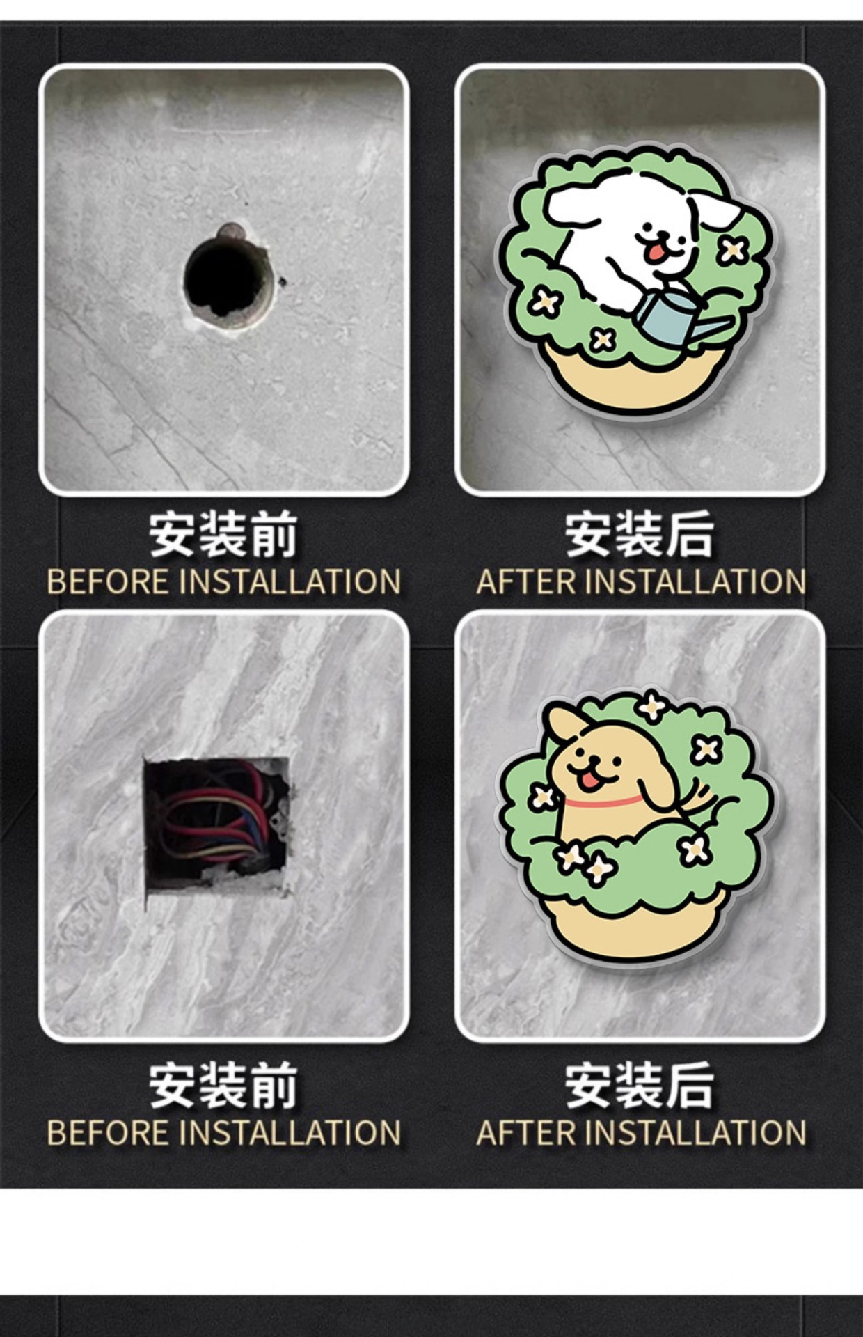큐피드 벽 스티커 라인 강아지 가정용 벽 커버 미운 장식 아크릴 구멍 벽 스티커 벽 구멍 장식 뚜껑
