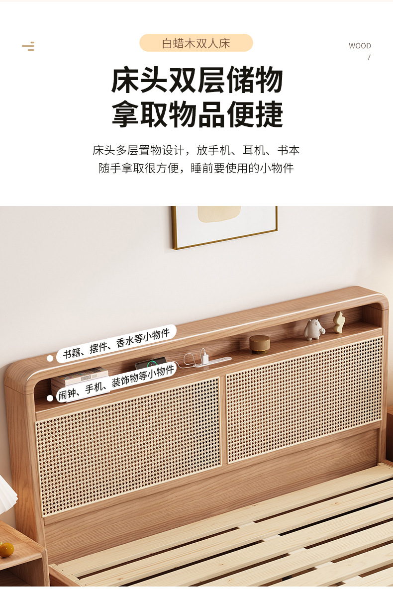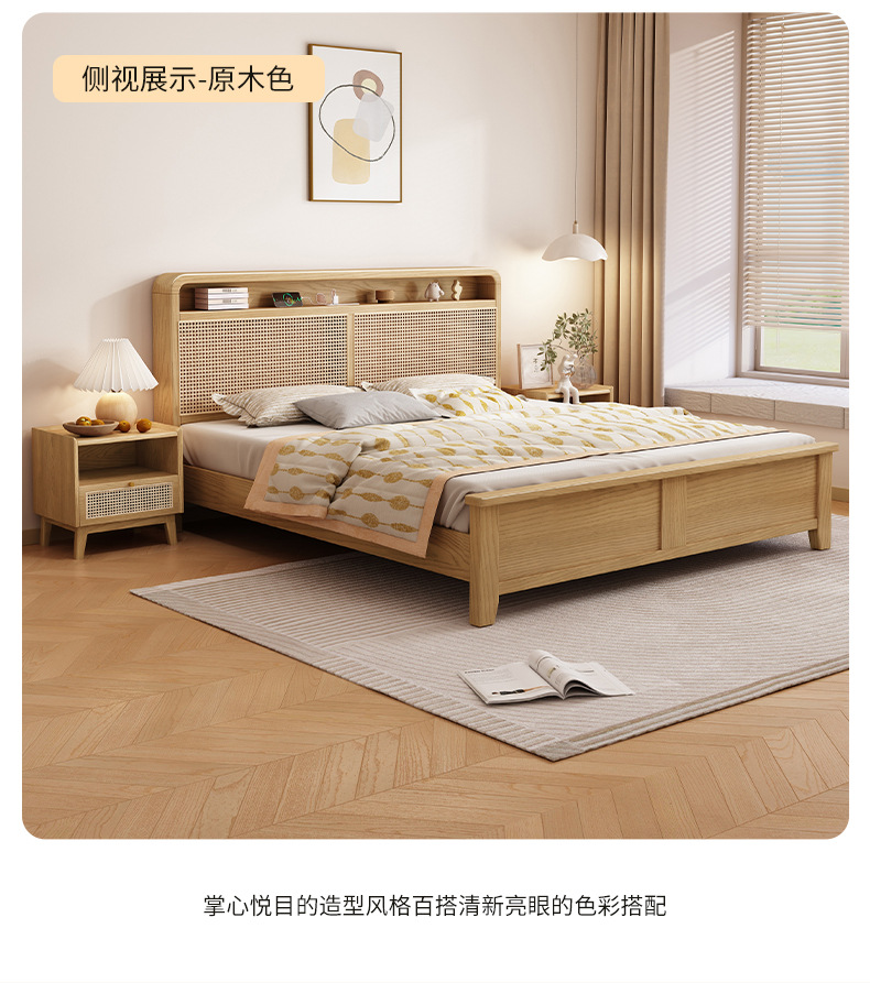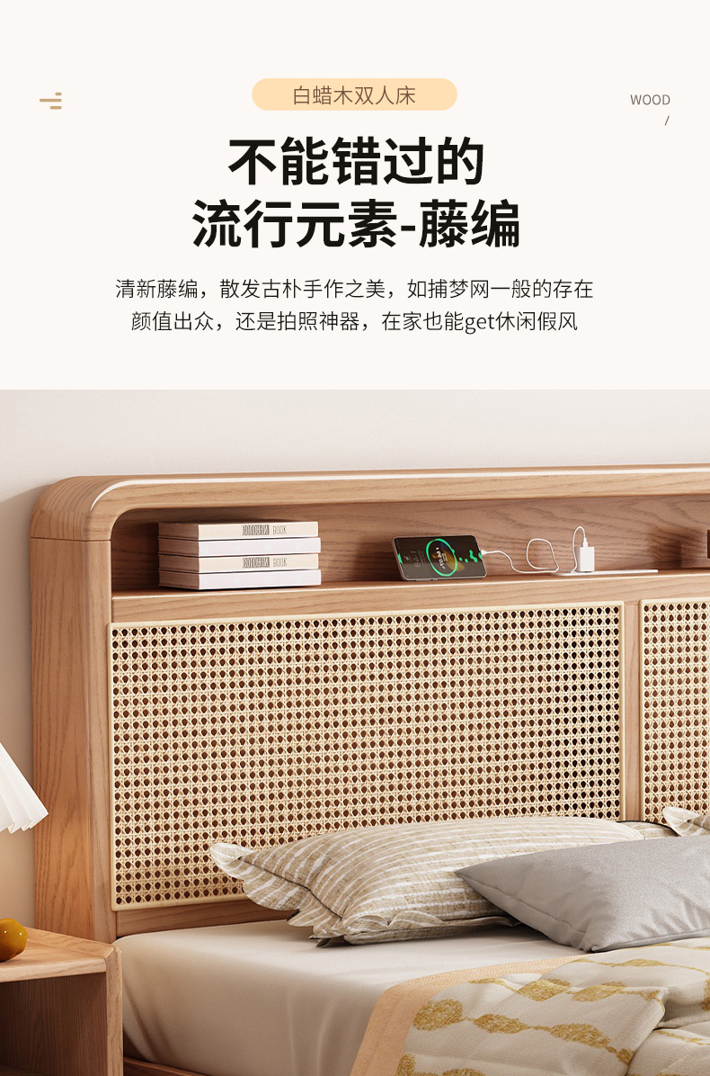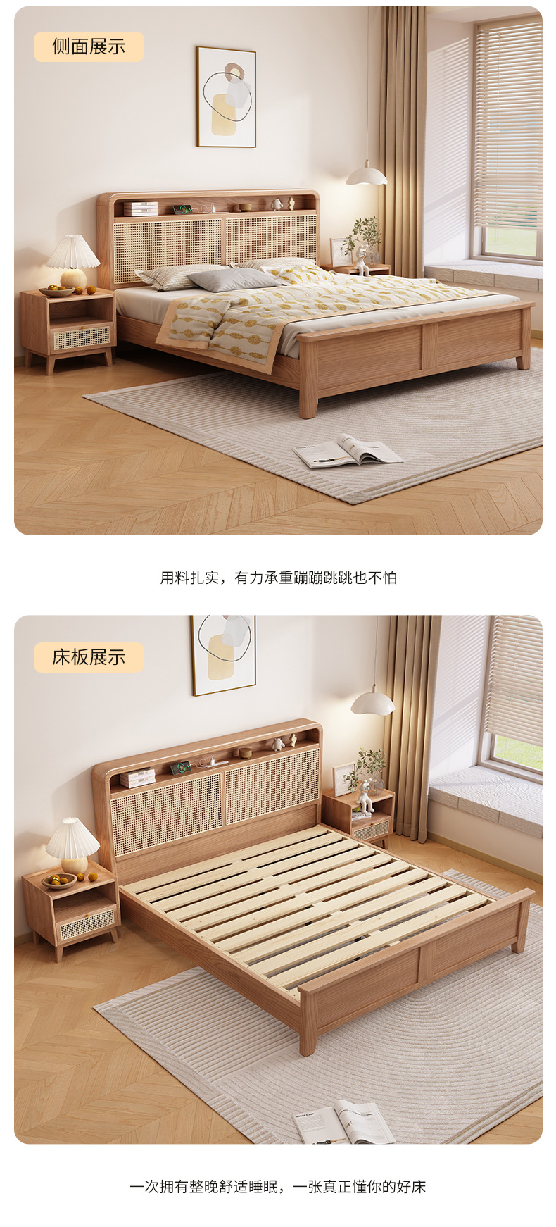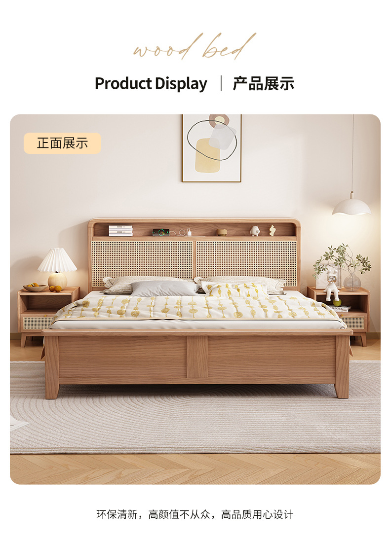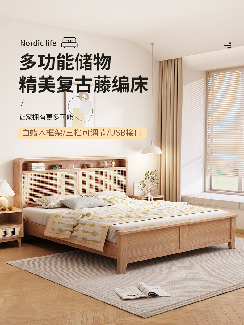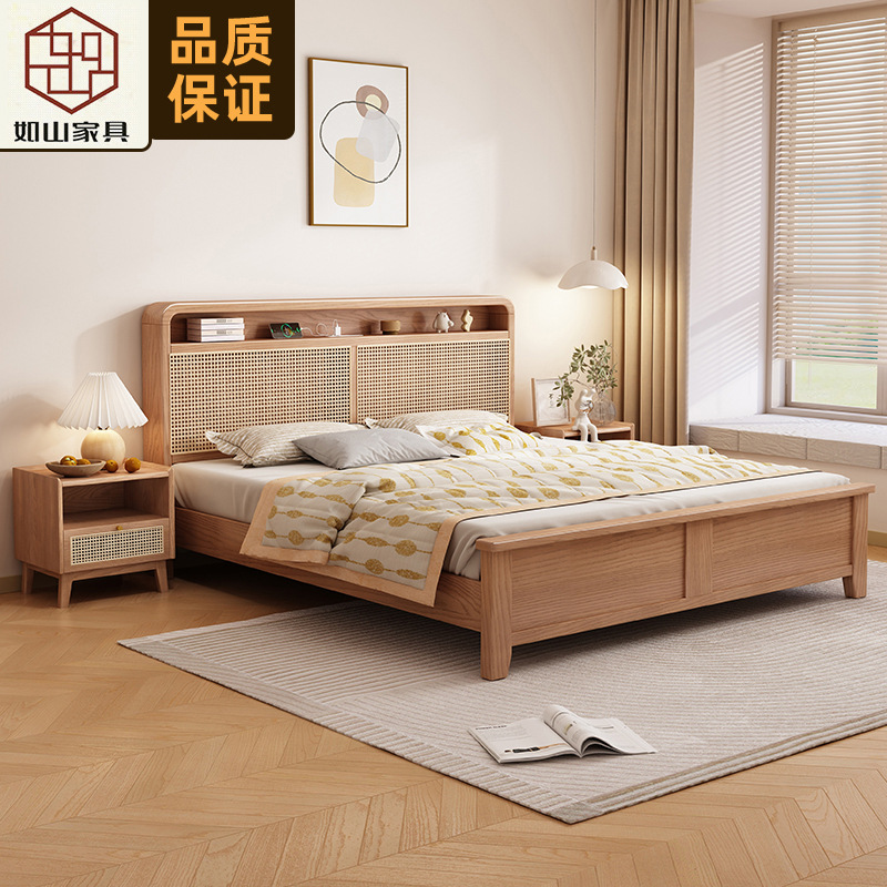 북유럽 등나무 재 단단한 나무 침대 침실 1.8 m 1.5 더블 침대 현대 간단한 풀 솔리드 우드 마스터 침실스토어 가기