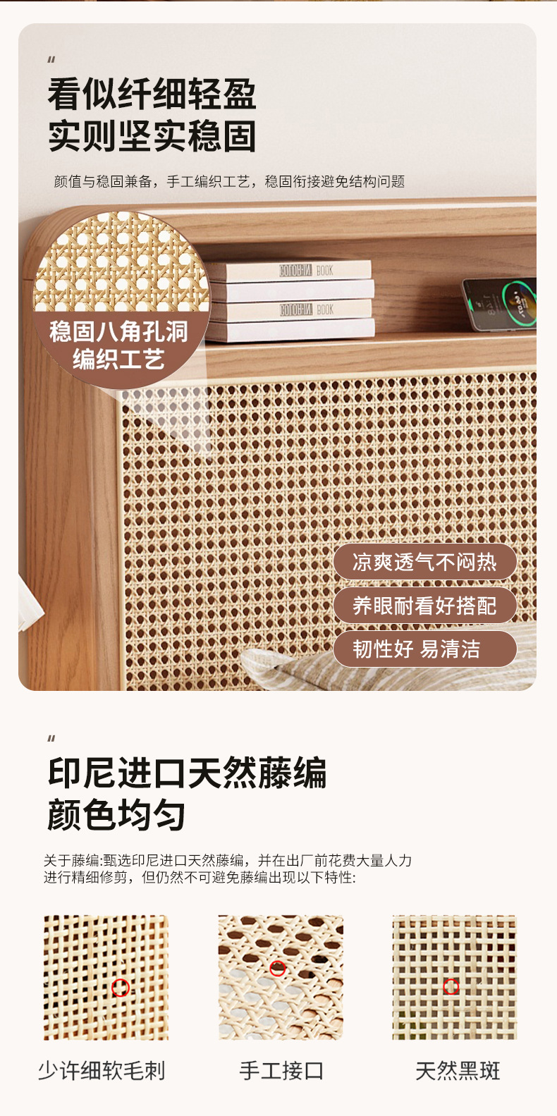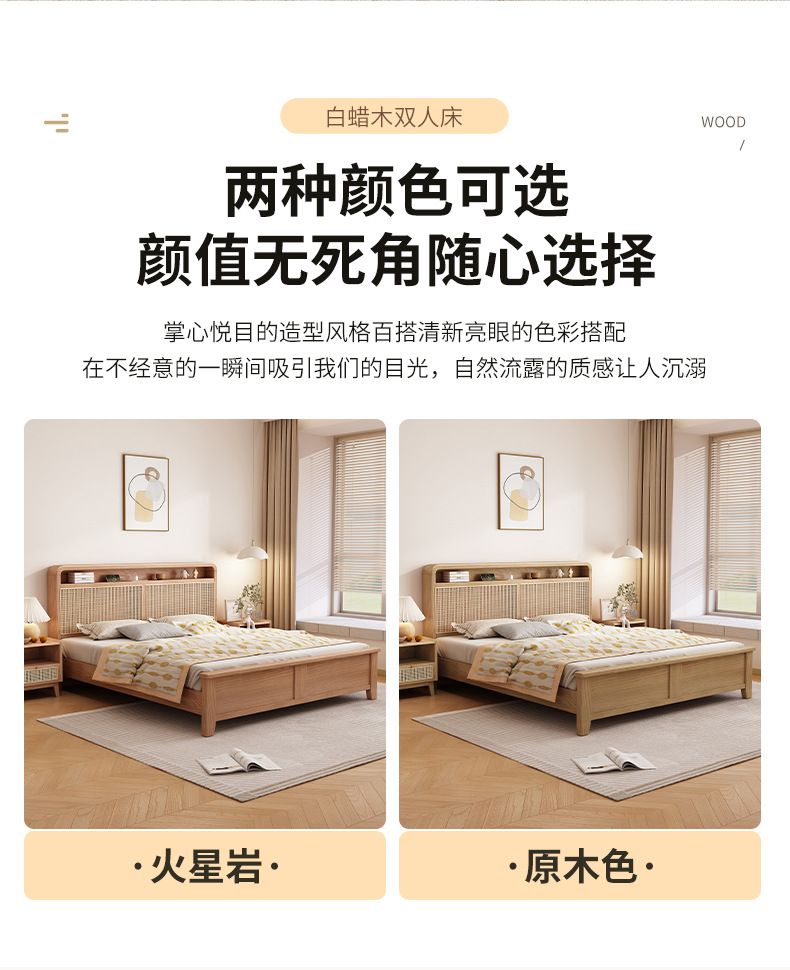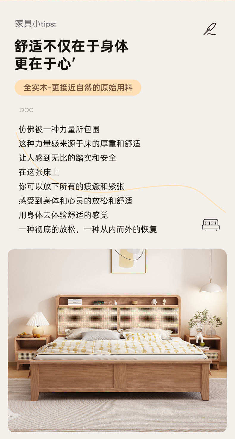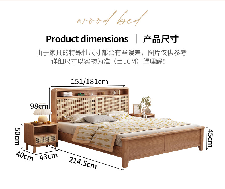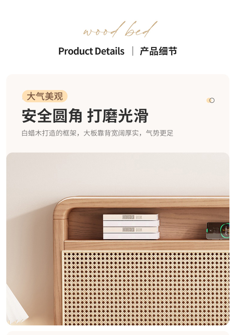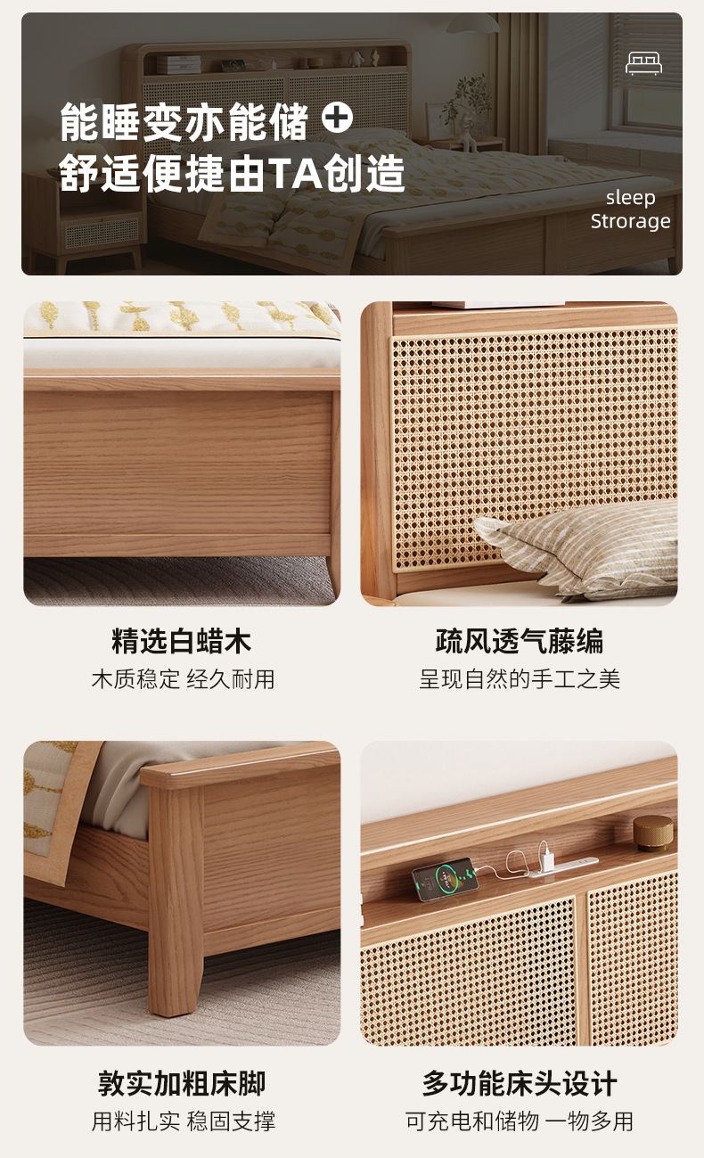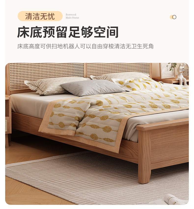 북유럽 등나무 재 단단한 나무 침대 침실 1.8 m 1.5 더블 침대 현대 간단한 풀 솔리드 우드 마스터 침실스토어 가기