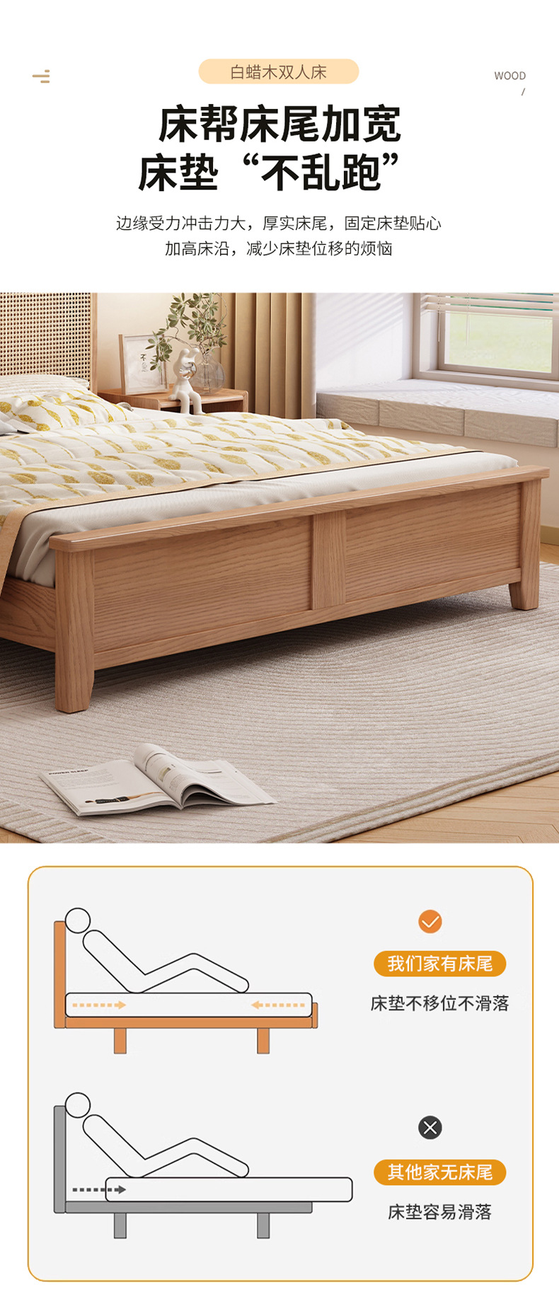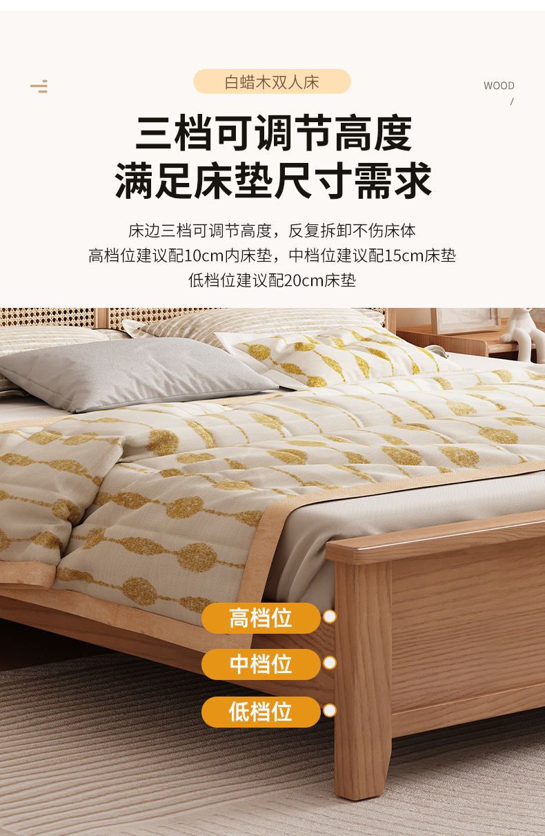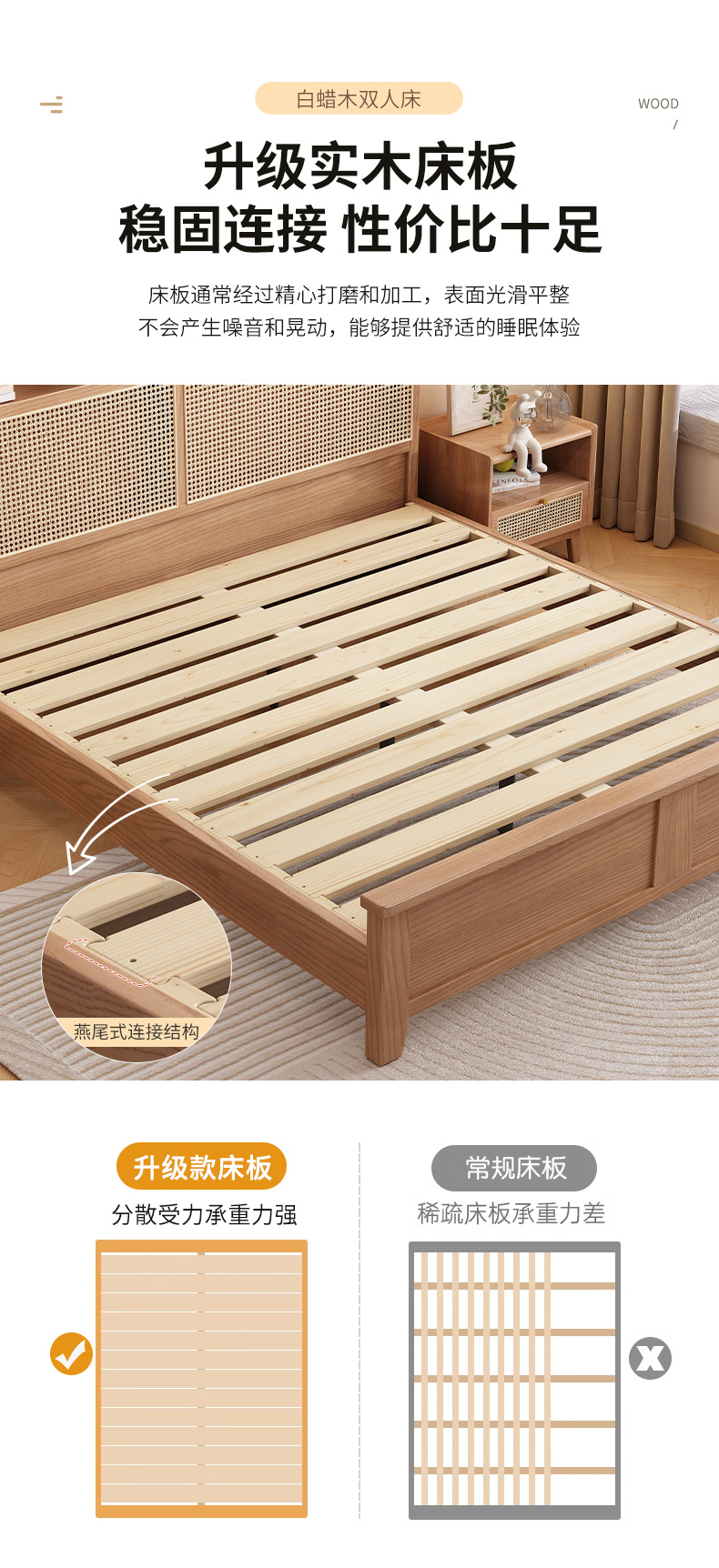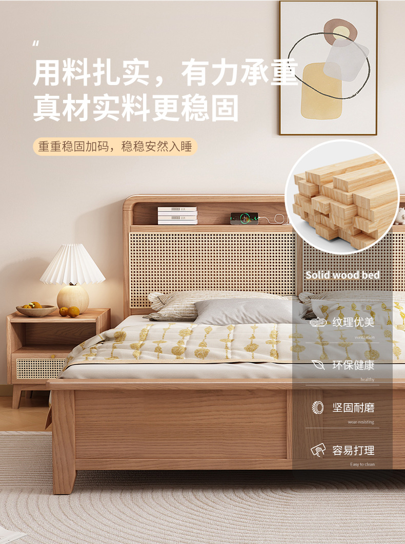 북유럽 등나무 재 단단한 나무 침대 침실 1.8 m 1.5 더블 침대 현대 간단한 풀 솔리드 우드 마스터 침실