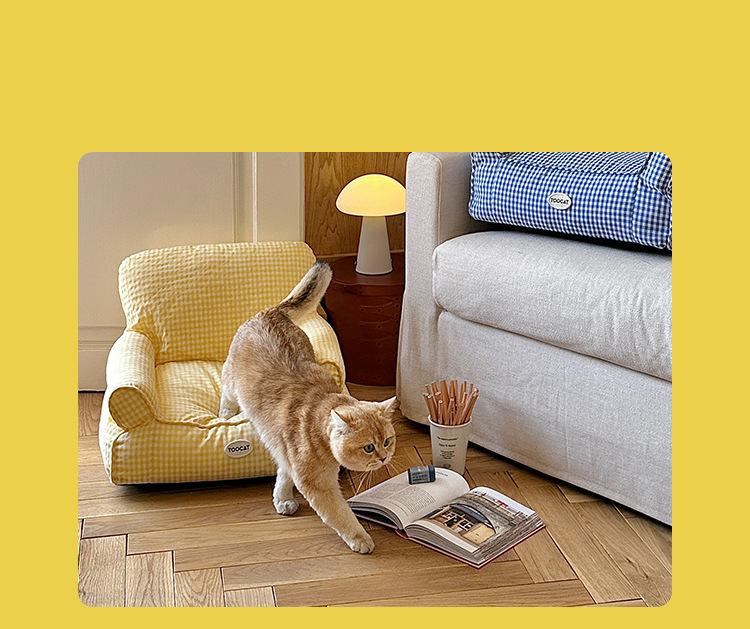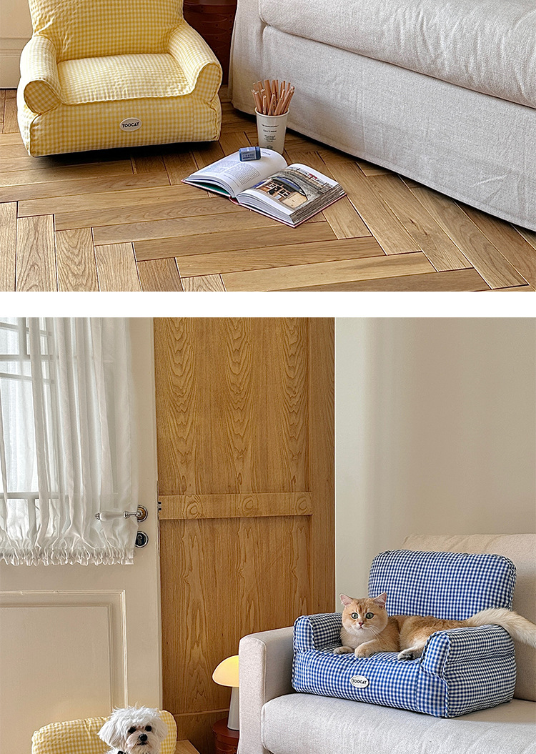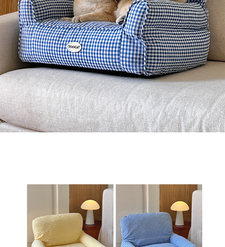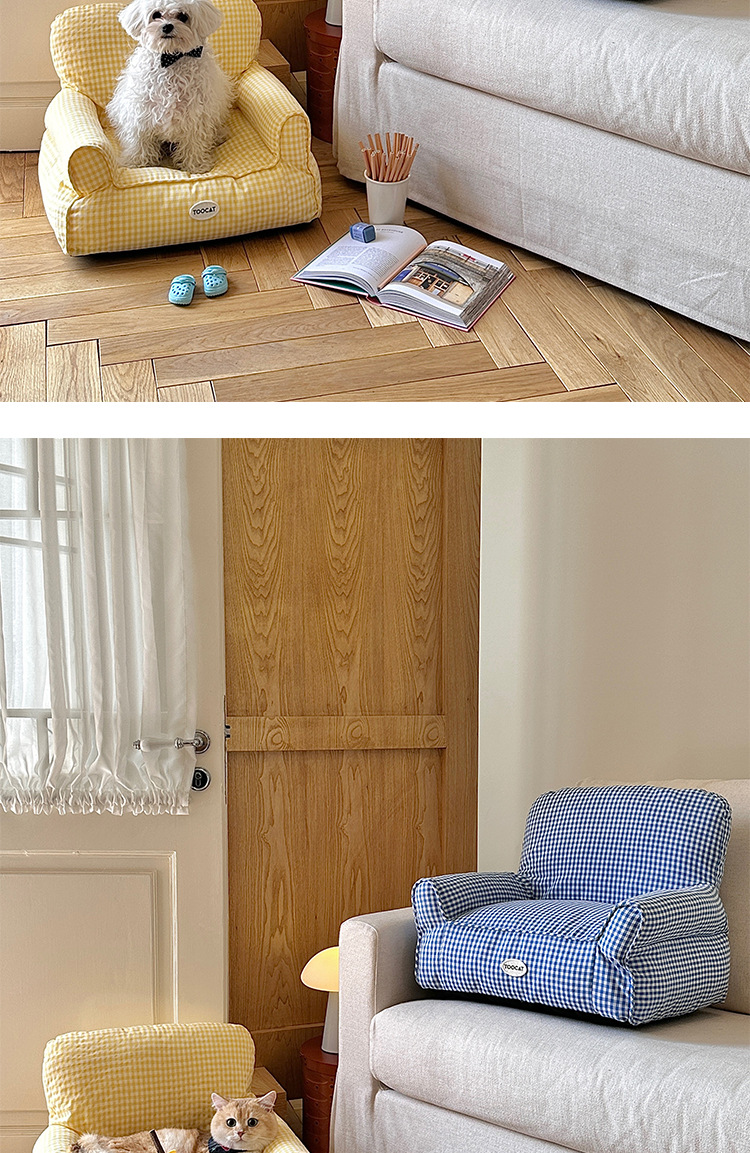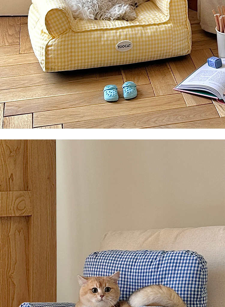 TOOCAT 한국 스타일 체크 무늬 애완 동물 소파 고양이의 사육장 작은 소파 사계절 유니버설 탈착식 빨 매트리스스토어 가기