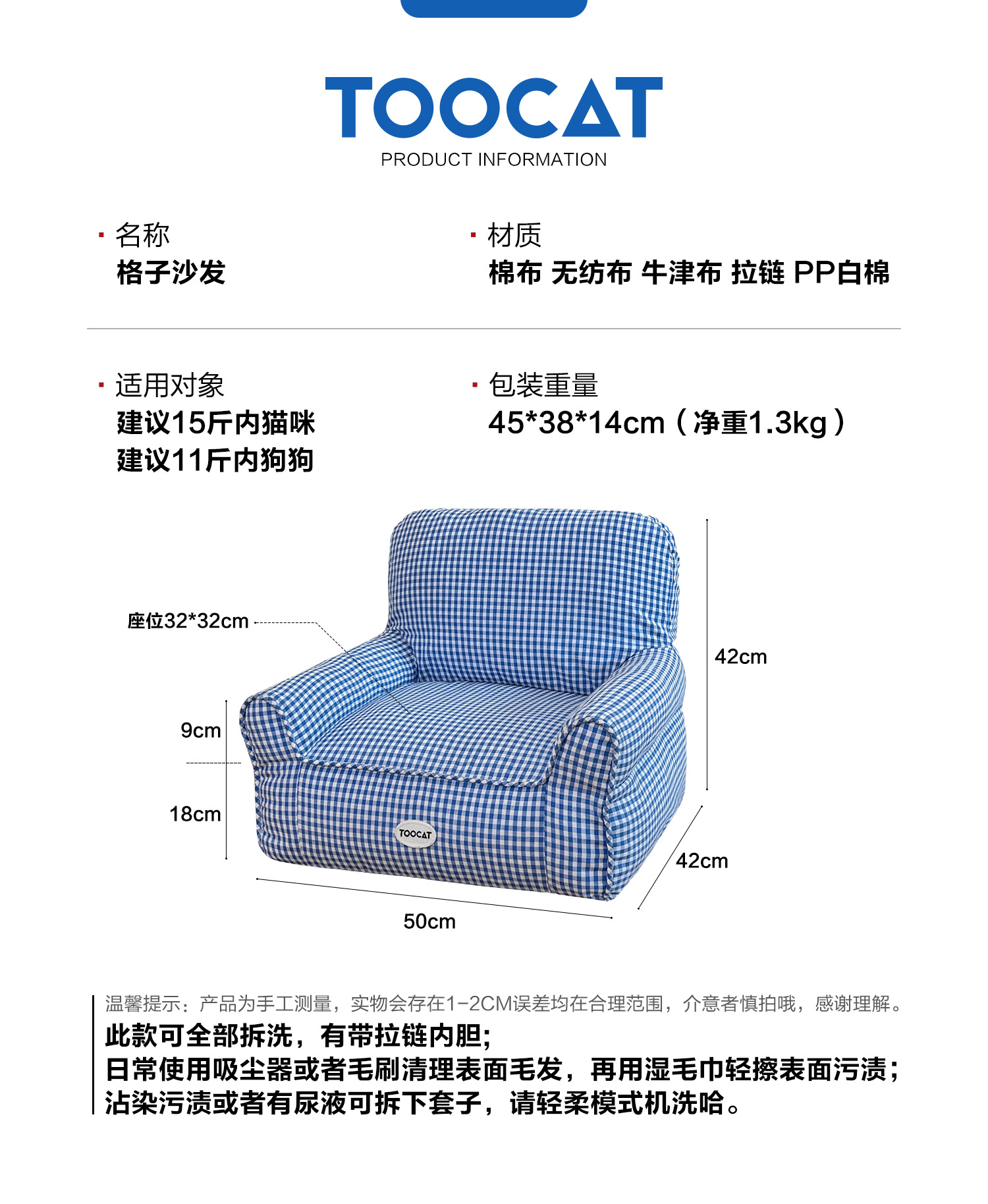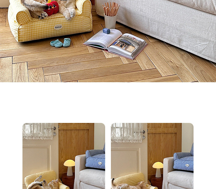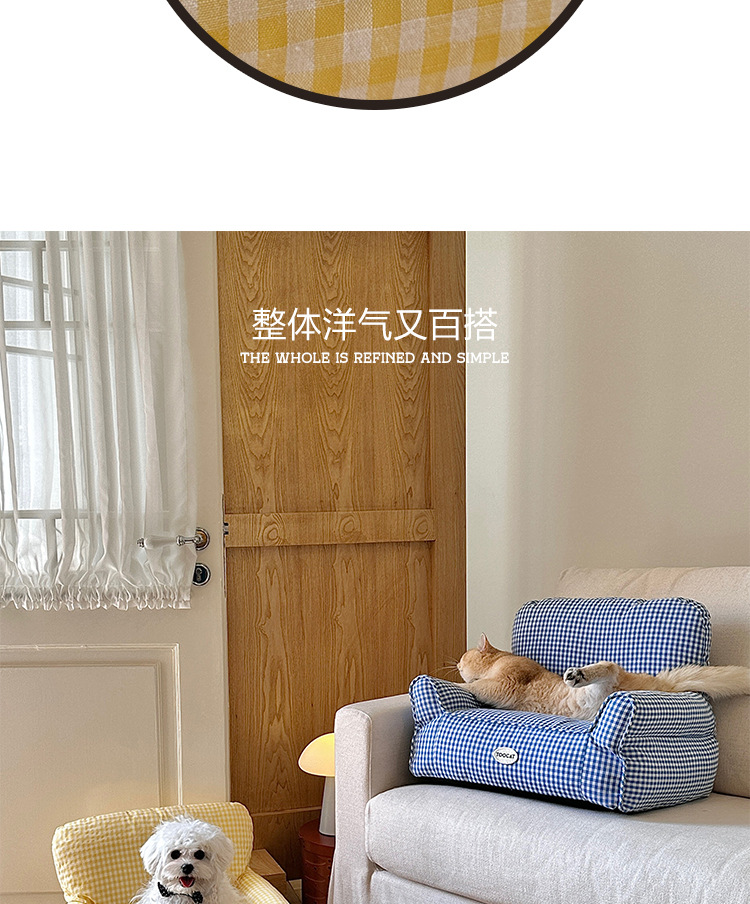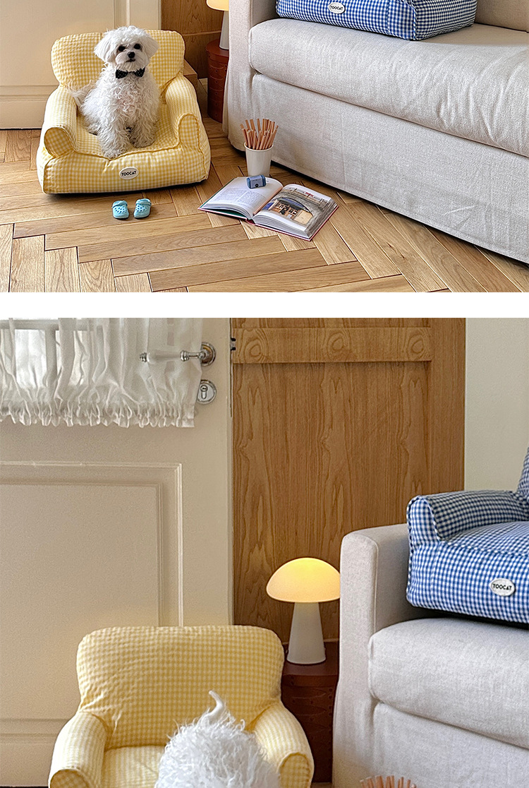 TOOCAT 한국 스타일 체크 무늬 애완 동물 소파 고양이의 사육장 작은 소파 사계절 유니버설 탈착식 빨 매트리스스토어 가기
