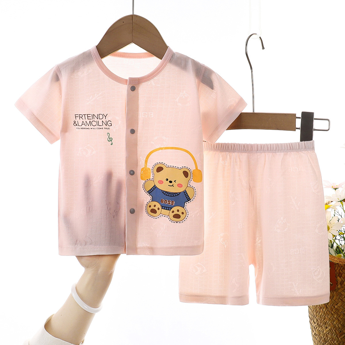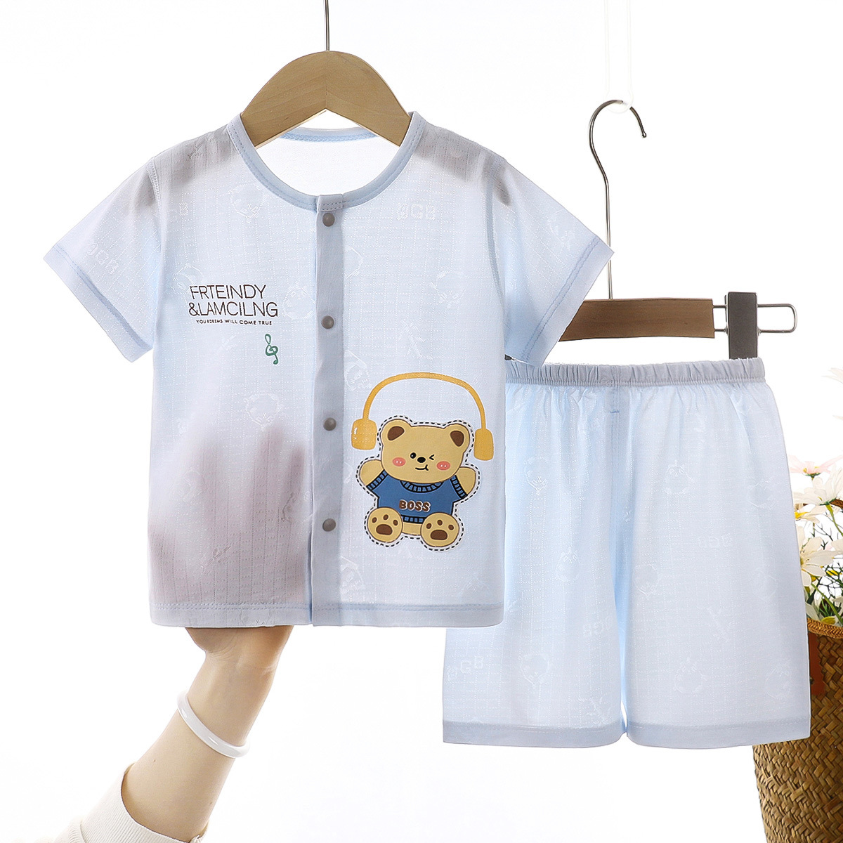뼈없는 여름 옷 아기 반팔 세트 어린이 얇은 통기성 파자마 소년의 에어컨 옷 아기 투피스 여름 세트