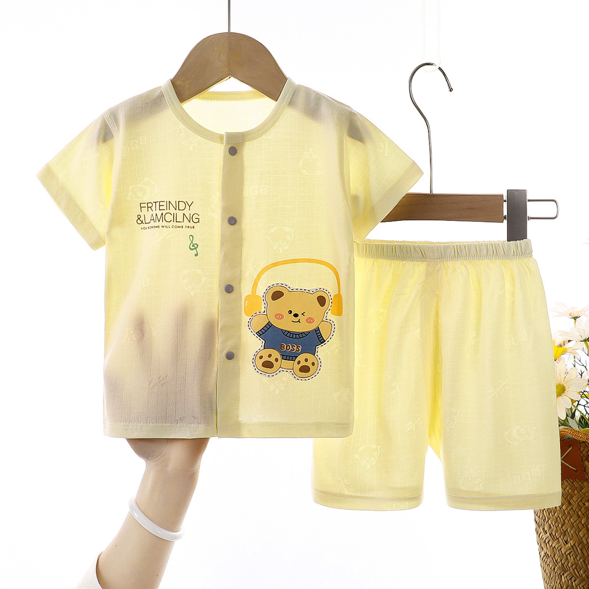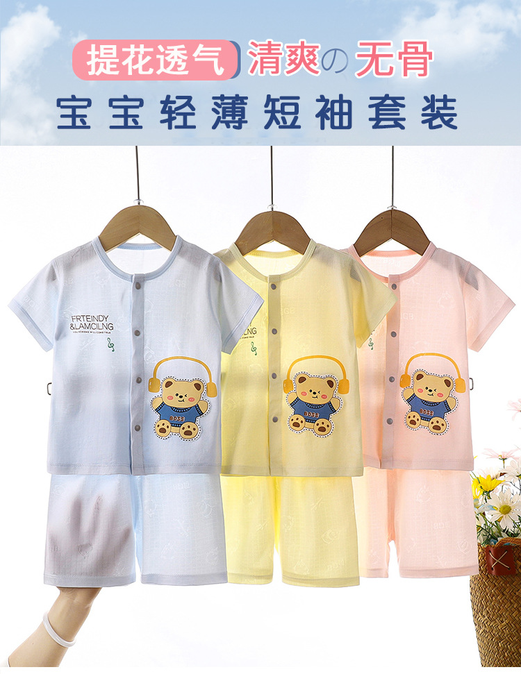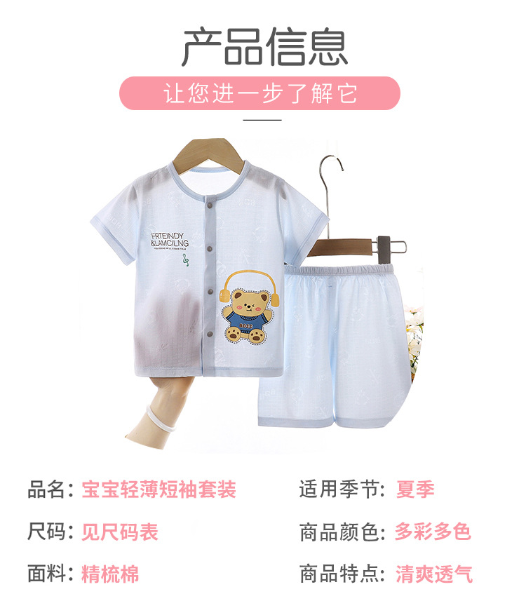 뼈없는 여름 옷 아기 반팔 세트 어린이 얇은 통기성 파자마 소년의 에어컨 옷 아기 투피스 여름 세트스토어 가기