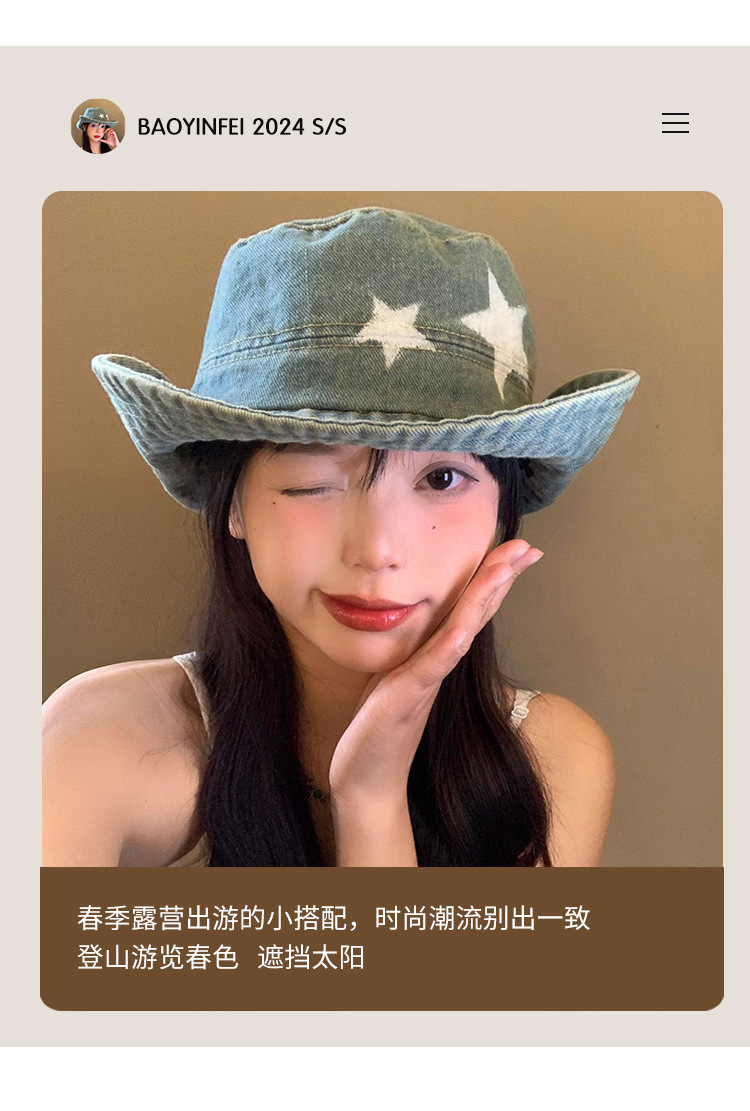 여성을위한 스타 카우보이 하이킹 모자 봄과 여름 야외 캠핑 태양 보호 큰 챙 어부 모자 서양 카우보이 모자스토어 가기