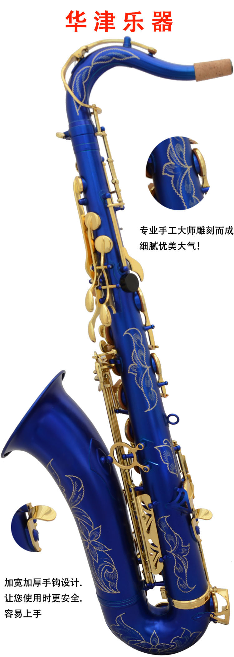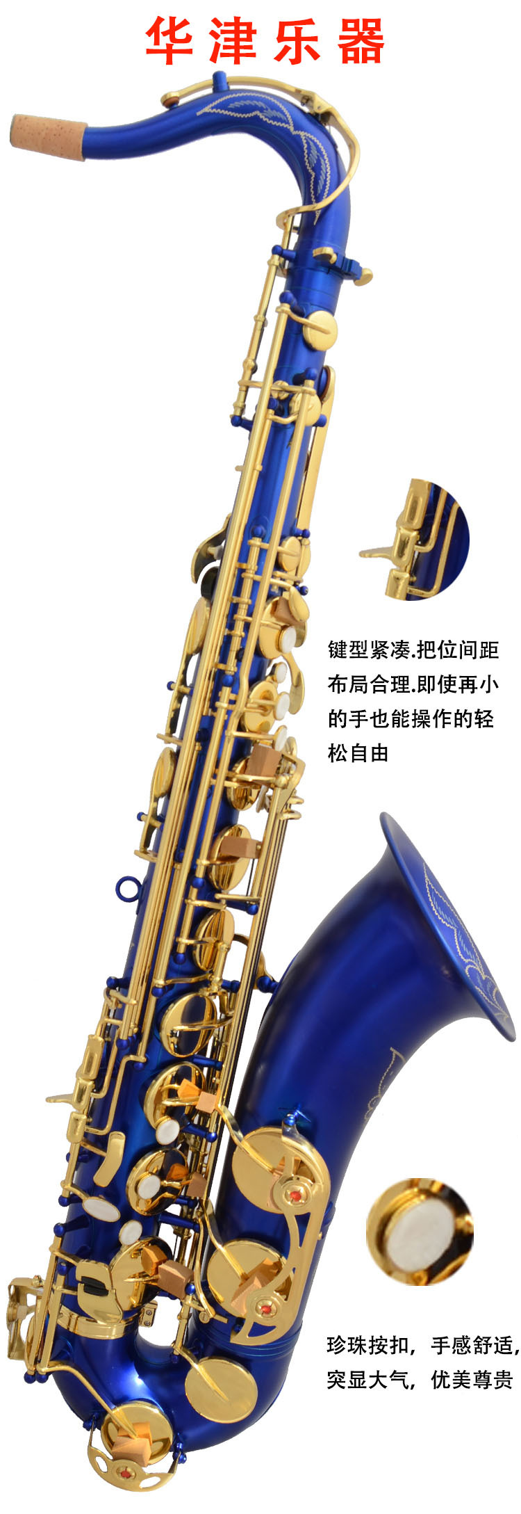 와진 색소폰 테너 색소폰 매트 블루 래커 골드 키 테너 색소폰스토어 가기