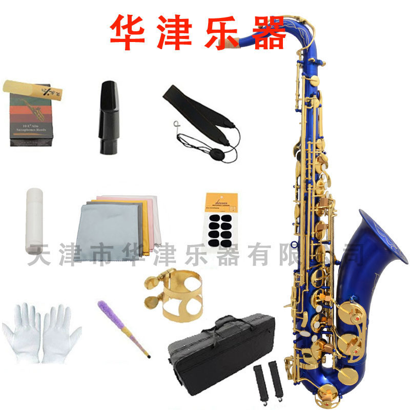 와진 색소폰 테너 색소폰 매트 블루 래커 골드 키 테너 색소폰