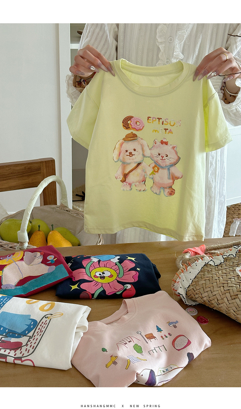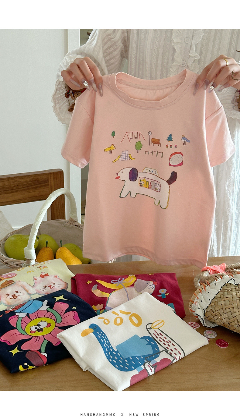 [재고 있음] 여아 여름 반팔 2025 신상 여름 상의 아동 티셔츠 한국식 아동복 순면 스타일
