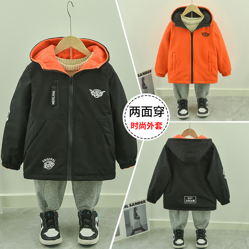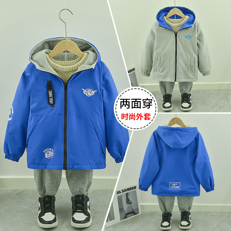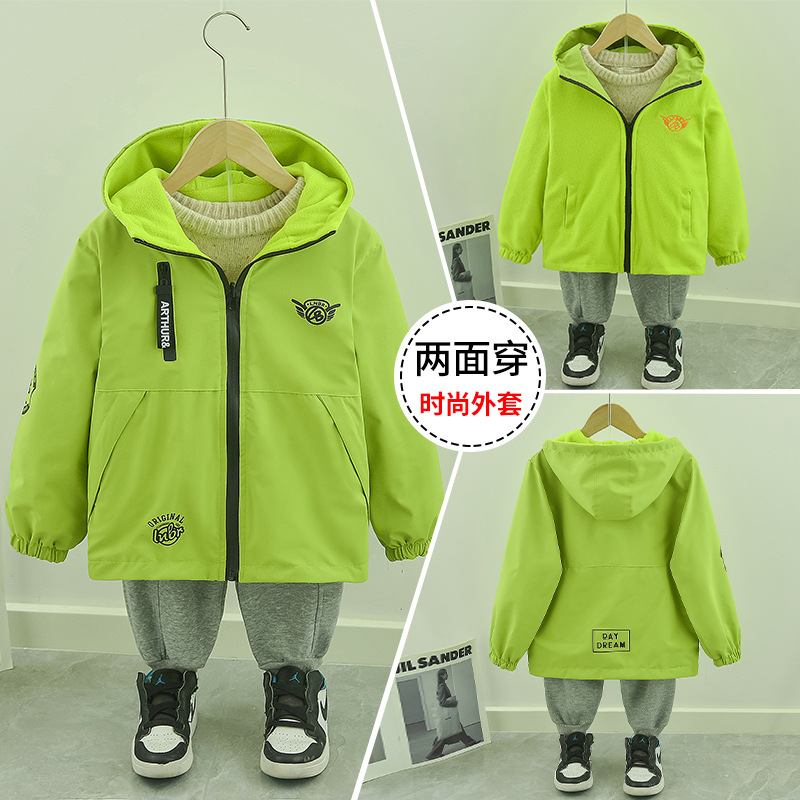 봄, 가을용 남아용 양면 재킷, 큰 어린이용 벨벳 상의, 아동용 양면 폴라 플리스 가디건 2025 새로운 스타일스토어 가기