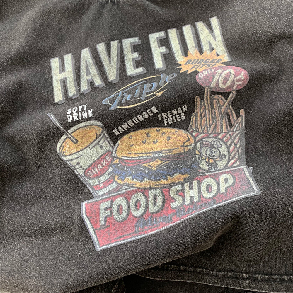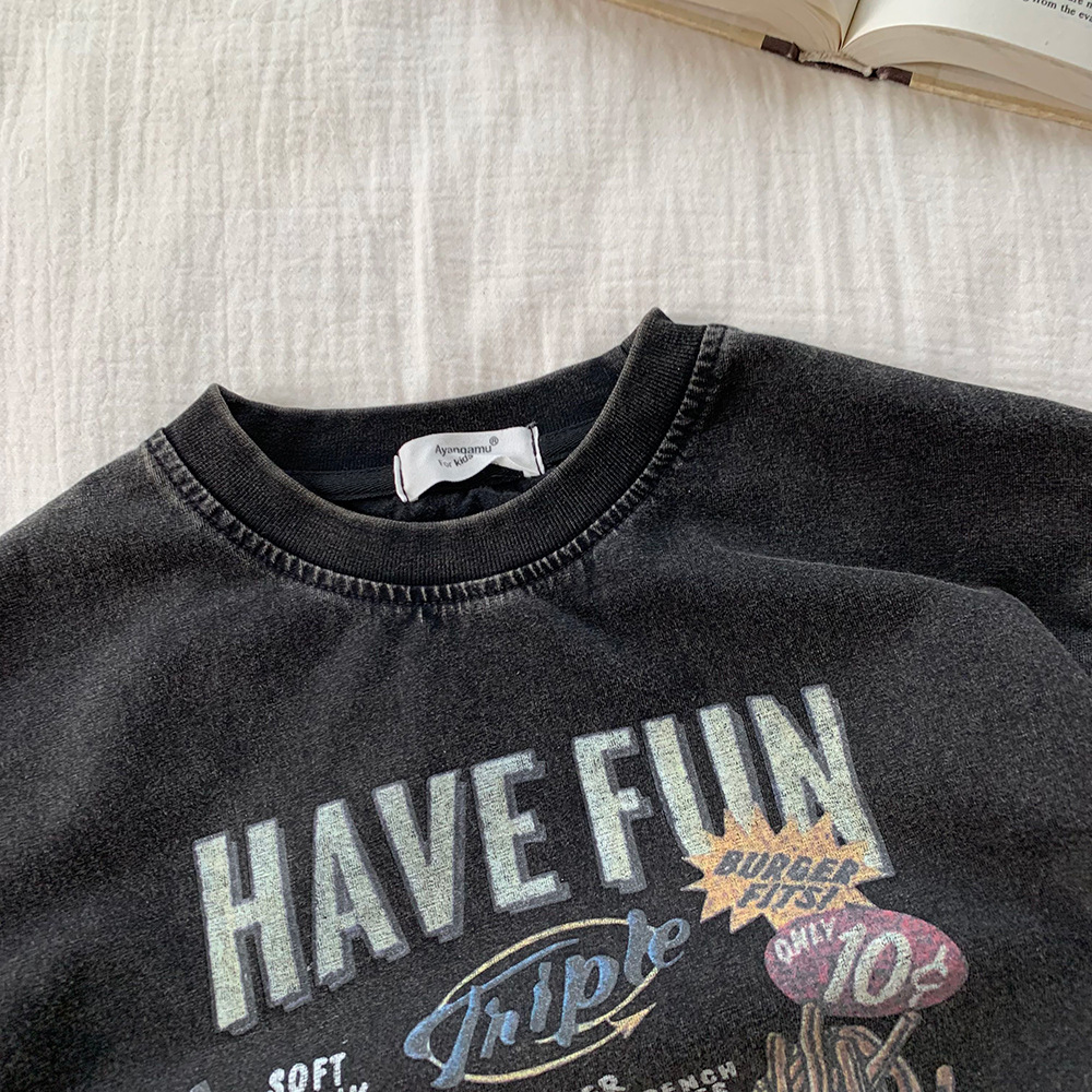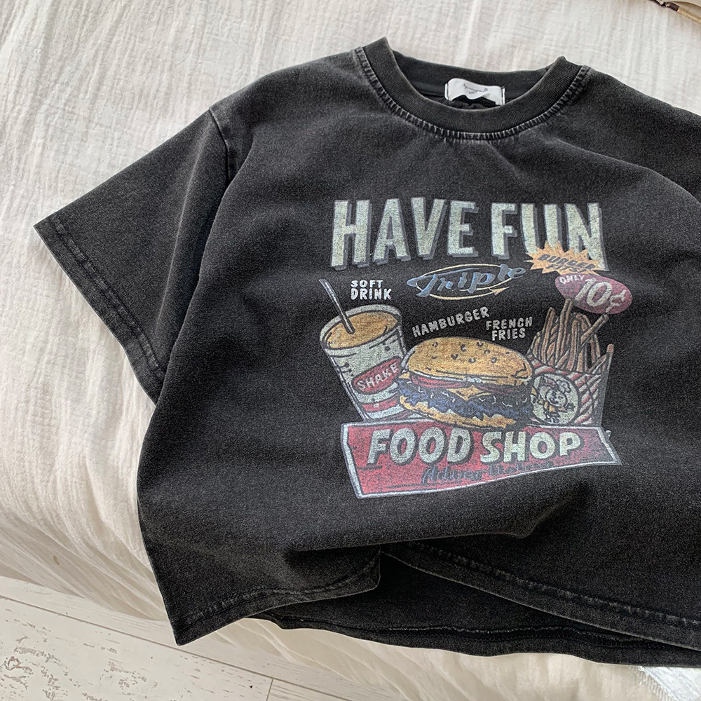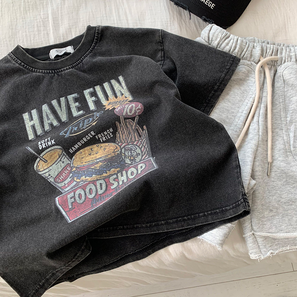 어린이 아동복 소년 티셔츠 유럽과 미국 스타일의 여름 만화 재미있는 햄버거 오버 시즈 올 매치 소녀의 짧은 소매 탑스토어 가기