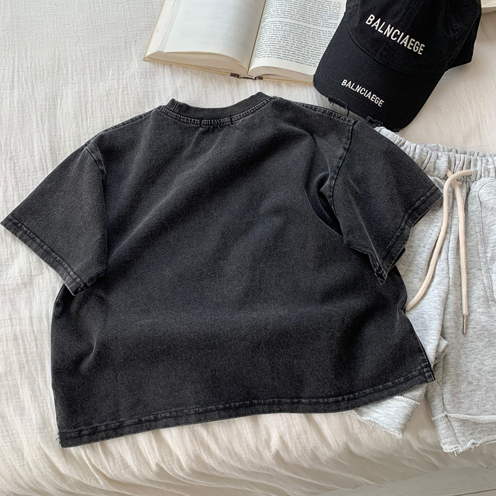 어린이 아동복 소년 티셔츠 유럽과 미국 스타일의 여름 만화 재미있는 햄버거 오버 시즈 올 매치 소녀의 짧은 소매 탑