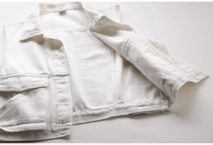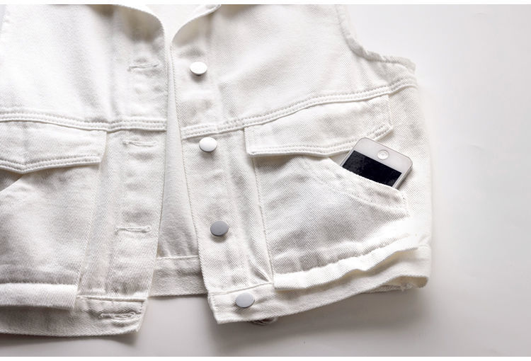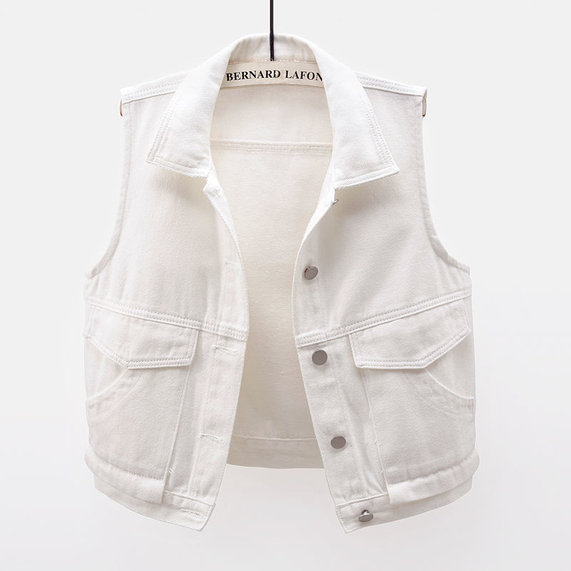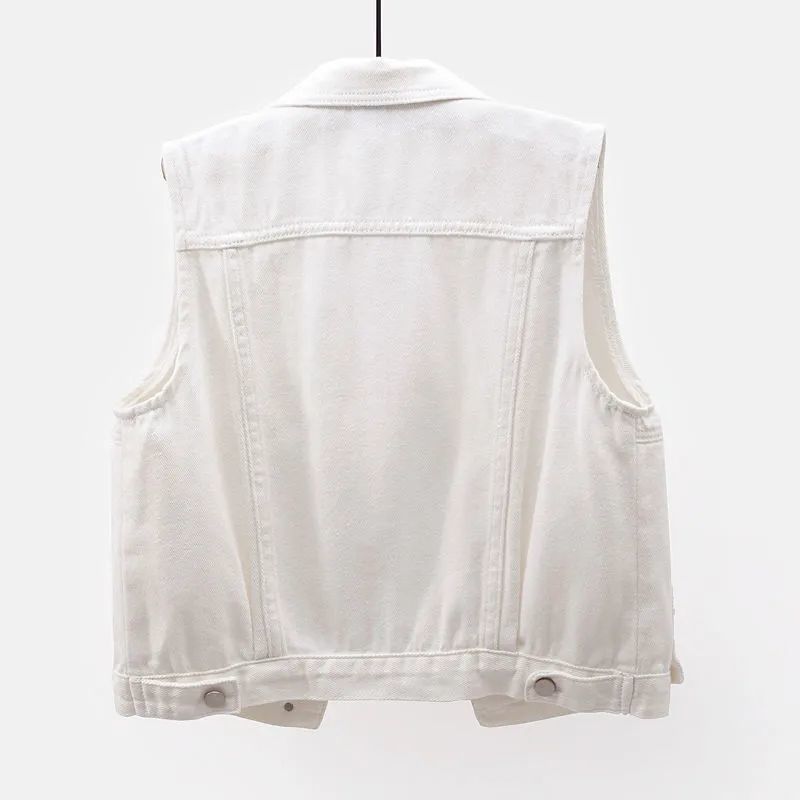2024 봄과 가을 새로운 도착 화이트 데님 조끼 여성의 짧은 슬림 슬리밍 웨이스트 코트 조끼 외부 웨이스트 코트 트렌디스토어 가기