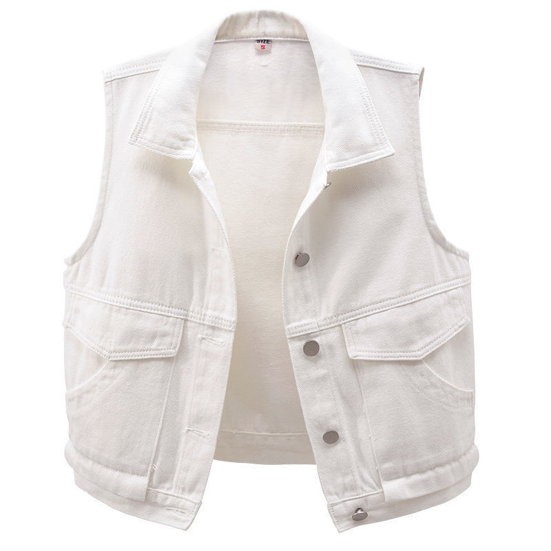 2024 봄과 가을 새로운 도착 화이트 데님 조끼 여성의 짧은 슬림 슬리밍 웨이스트 코트 조끼 외부 웨이스트 코트 트렌디