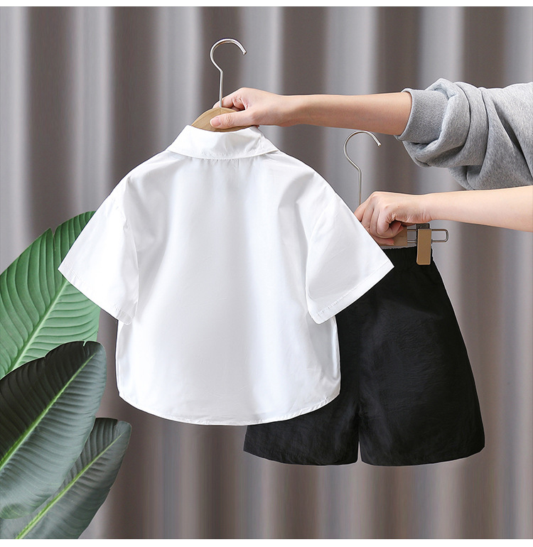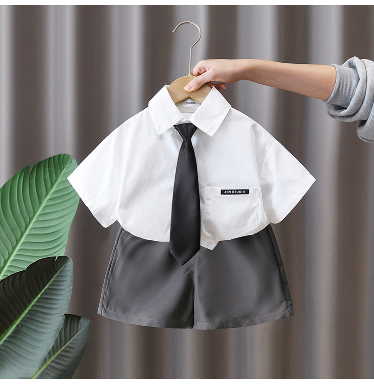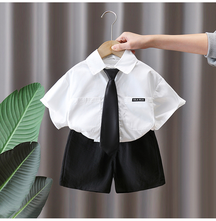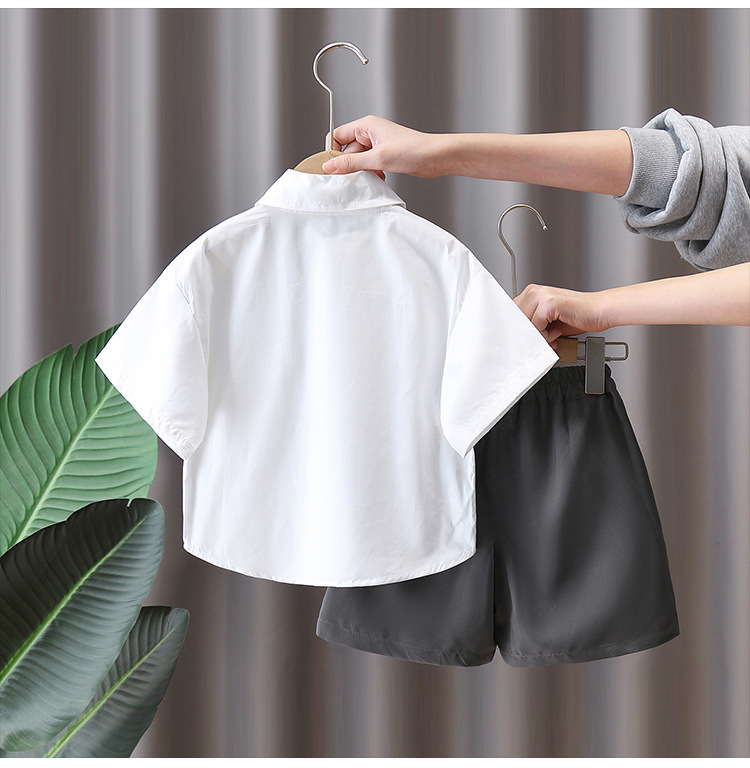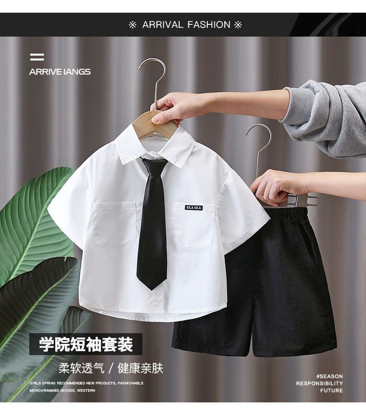 7160 소년 여름 세트 어린이 여름 화이트 셔츠 2025 새로운 어린이 소년 세트 여름 대학 스타일
