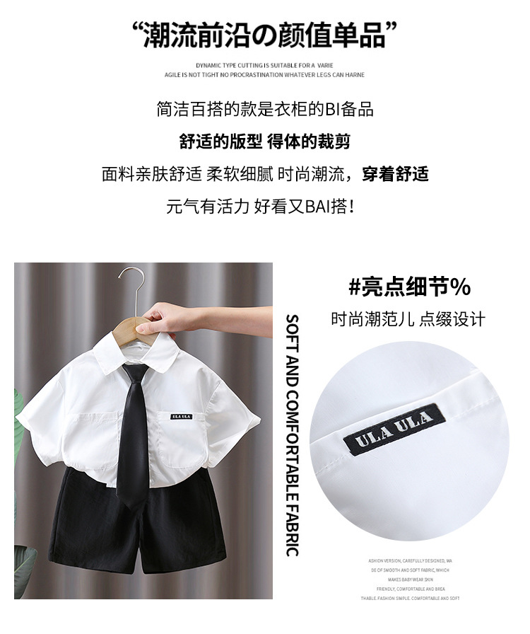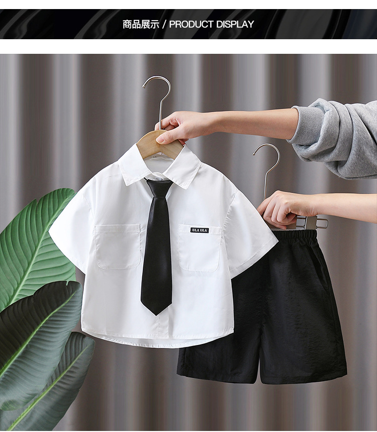7160 소년 여름 세트 어린이 여름 화이트 셔츠 2025 새로운 어린이 소년 세트 여름 대학 스타일스토어 가기