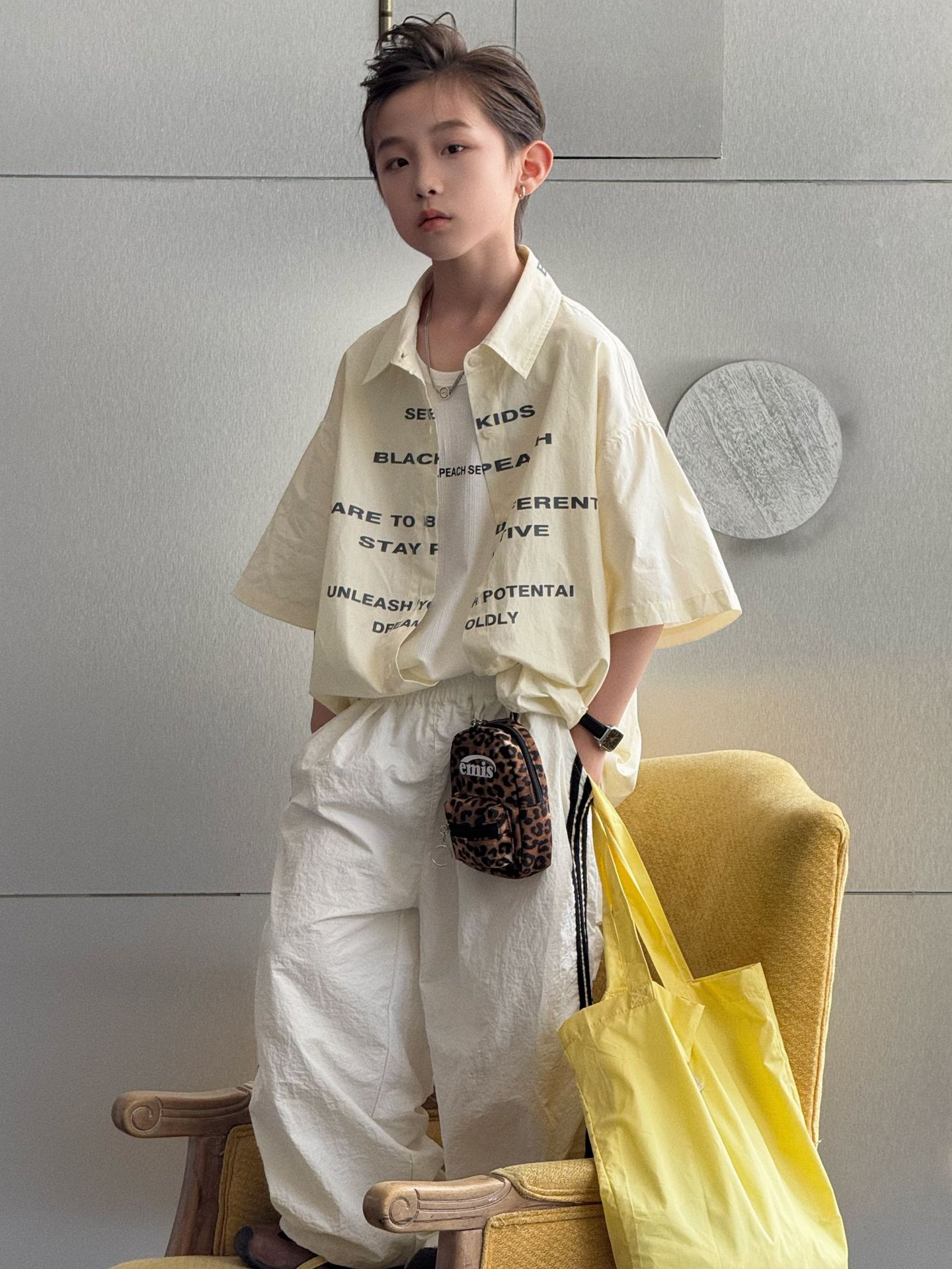 2025 여름 아동복 남아 한국 스타일 다용도 루즈핏 셔츠 반팔 아동 여름 상의 캐주얼 다용도