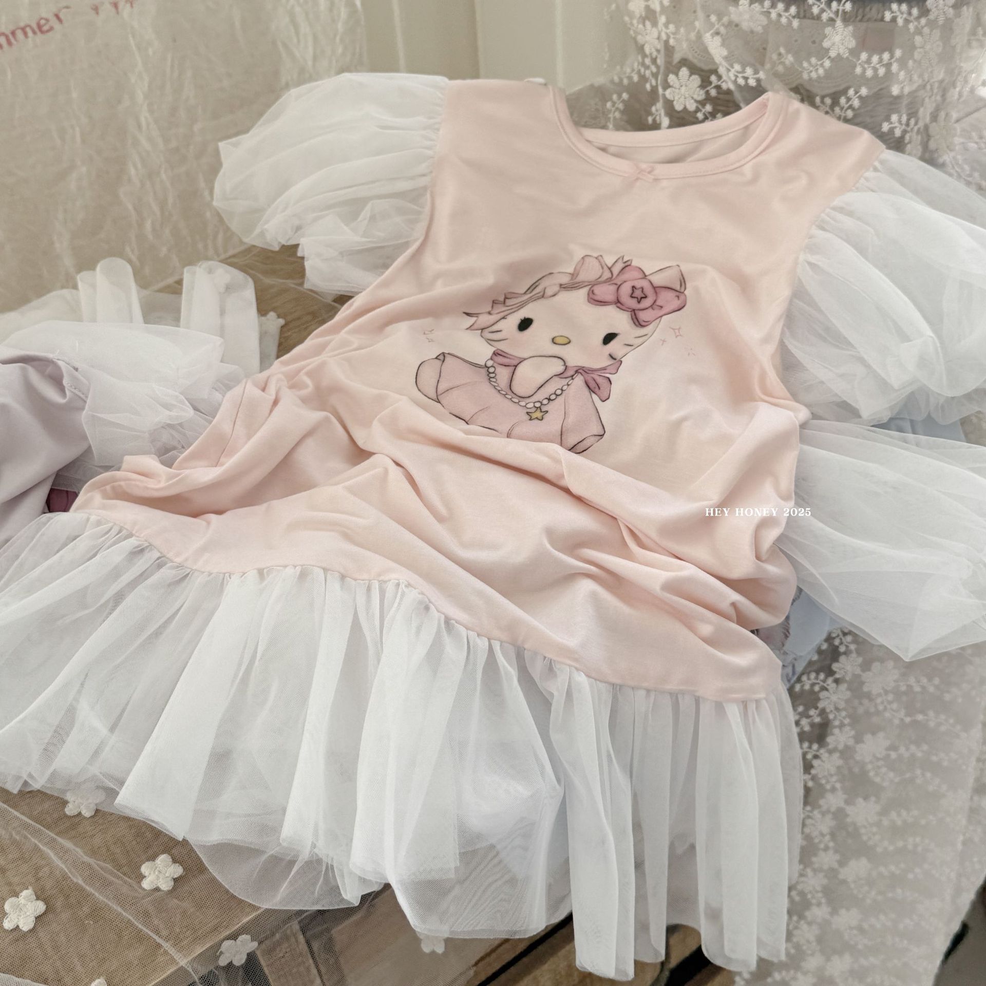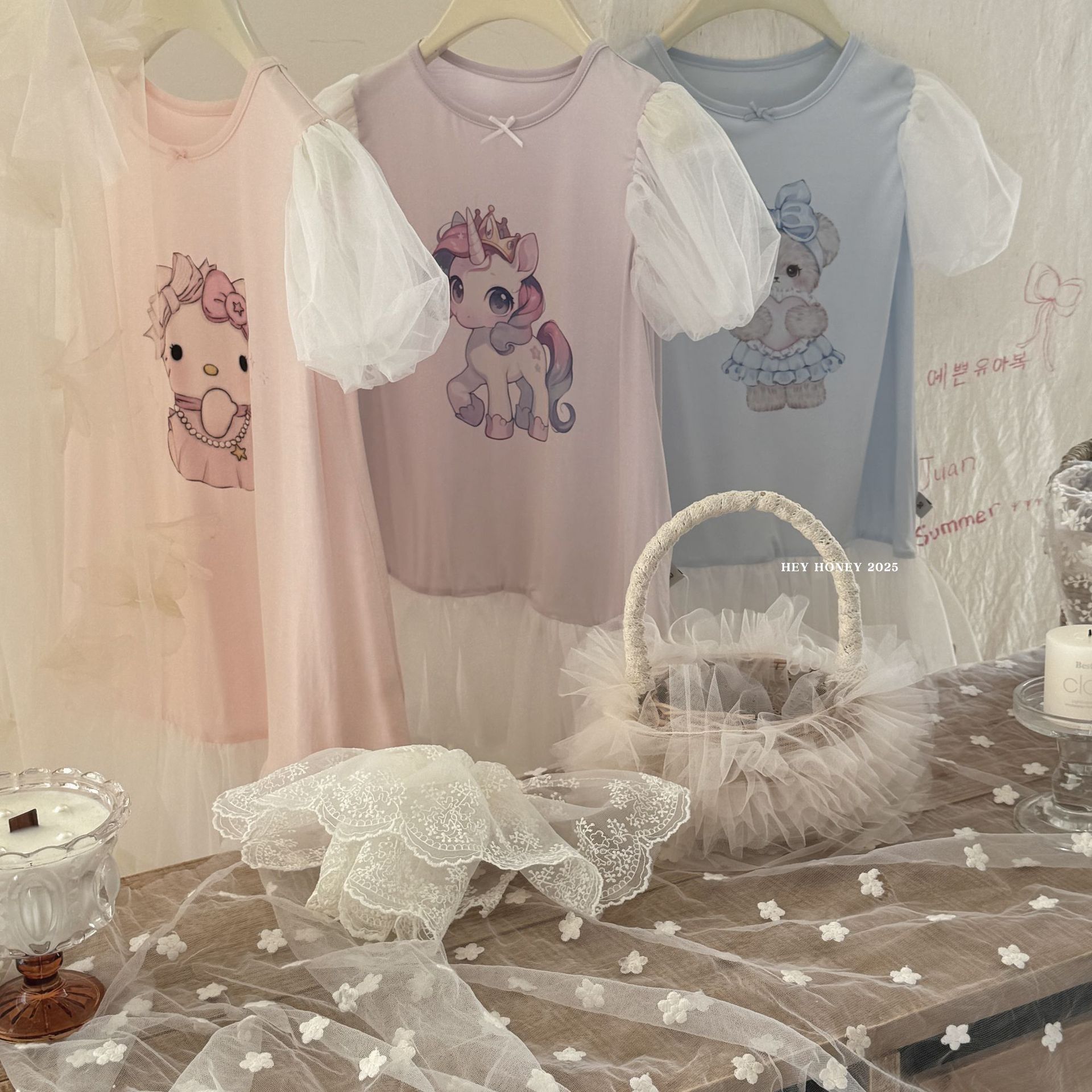 사이즈 롤 25 여름 새 소녀 공주 원피스 버블 슬리브 모달 홈 옷 원피스 나이트 드레스 베일 스커트스토어 가기