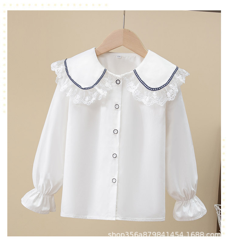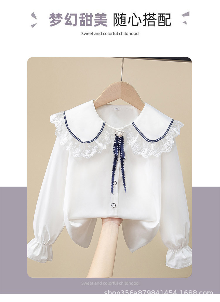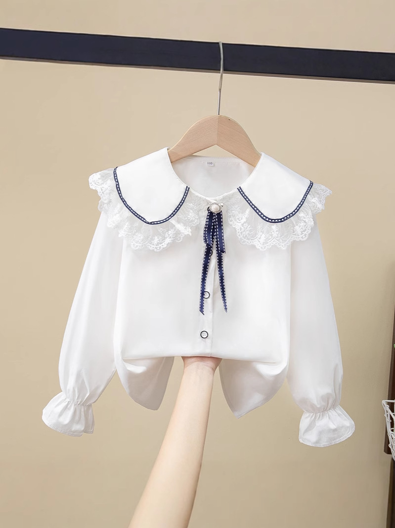 여아용 다재다능하고 귀여운 레이스 중대형 아동용 긴팔 어린이 공주 인형 칼라 캠퍼스 긴팔 셔츠 쉬폰
