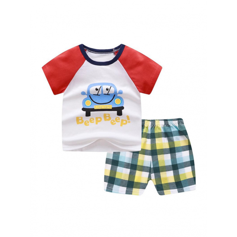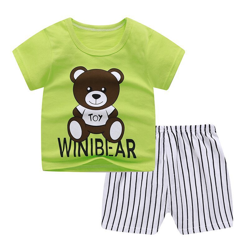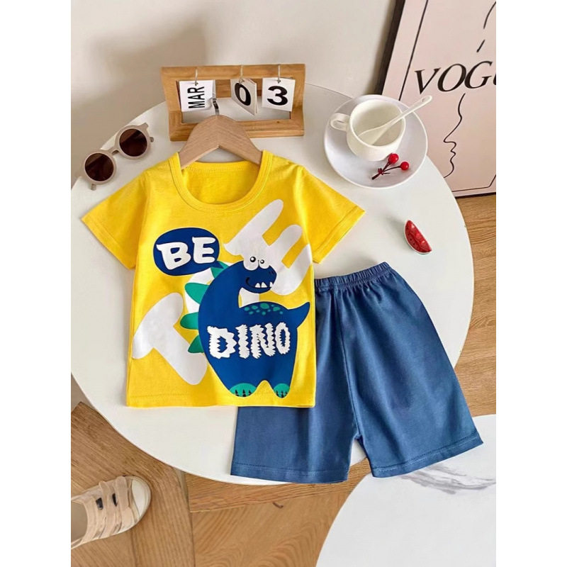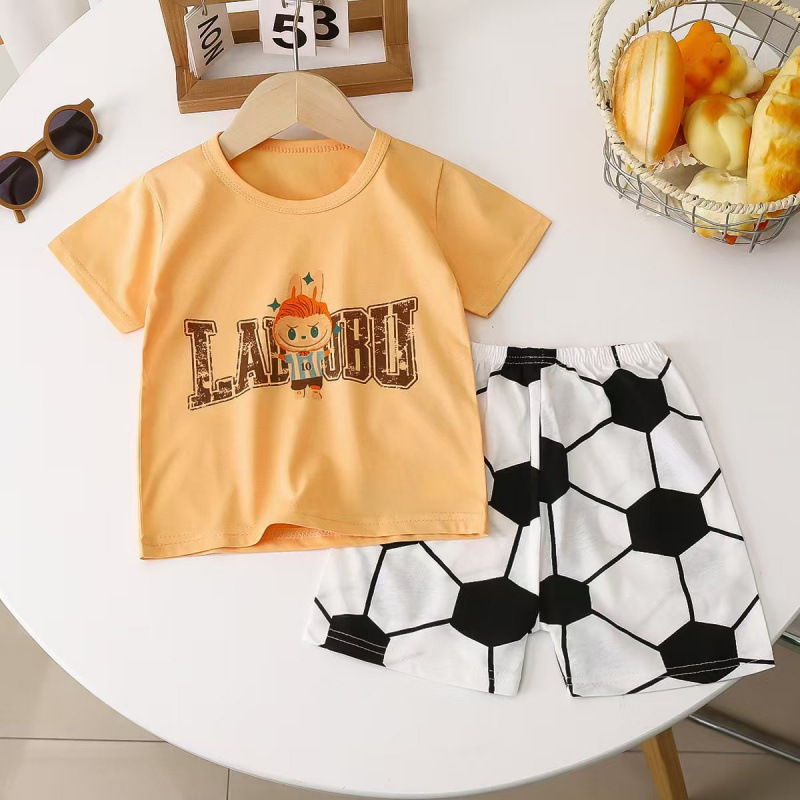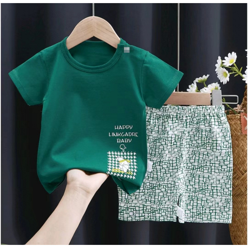 어린이 면화 티셔츠 여름 아기 소년과 소녀 아기 반팔 반바지 세트 아기 반소매 아동복 도매