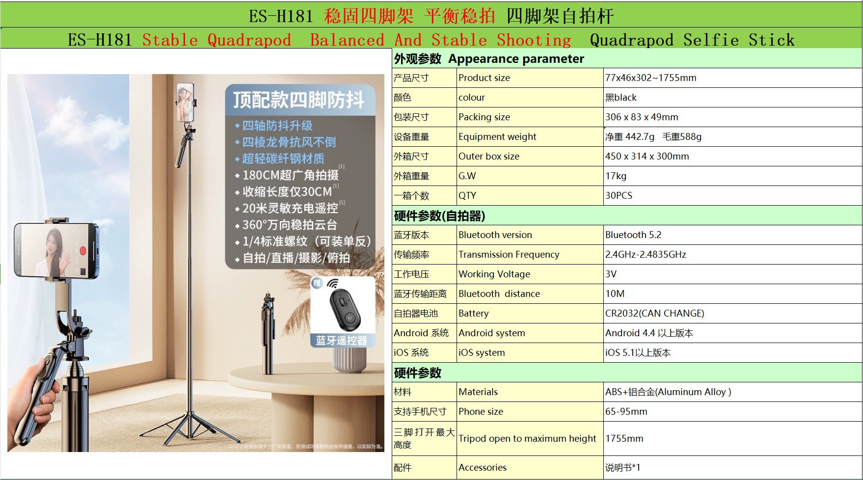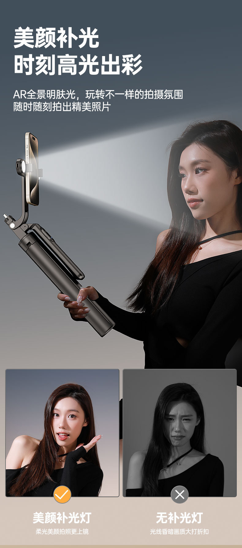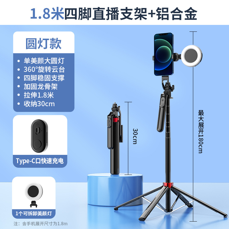 새로운 4축 스마트 짐벌 블루투스 셀카봉 라이브 방송 손떨림 방지 뷰티 확장 플로어 스탠딩 휴대폰 홀더 4피트 스탠드