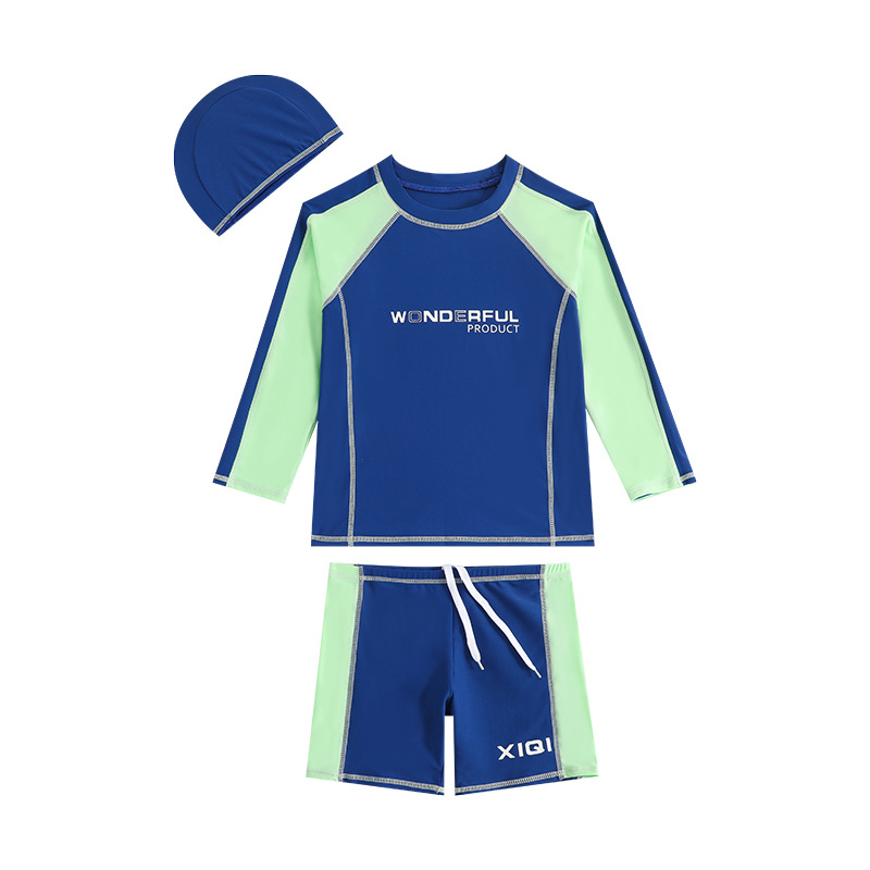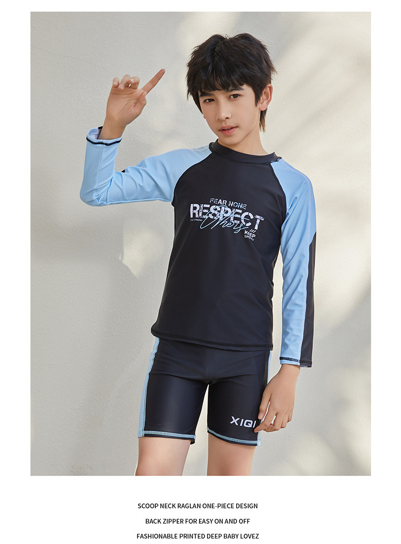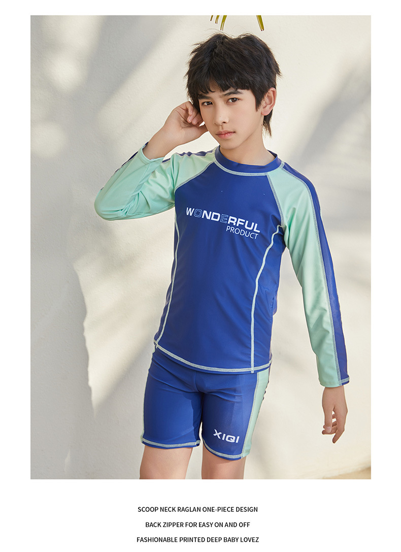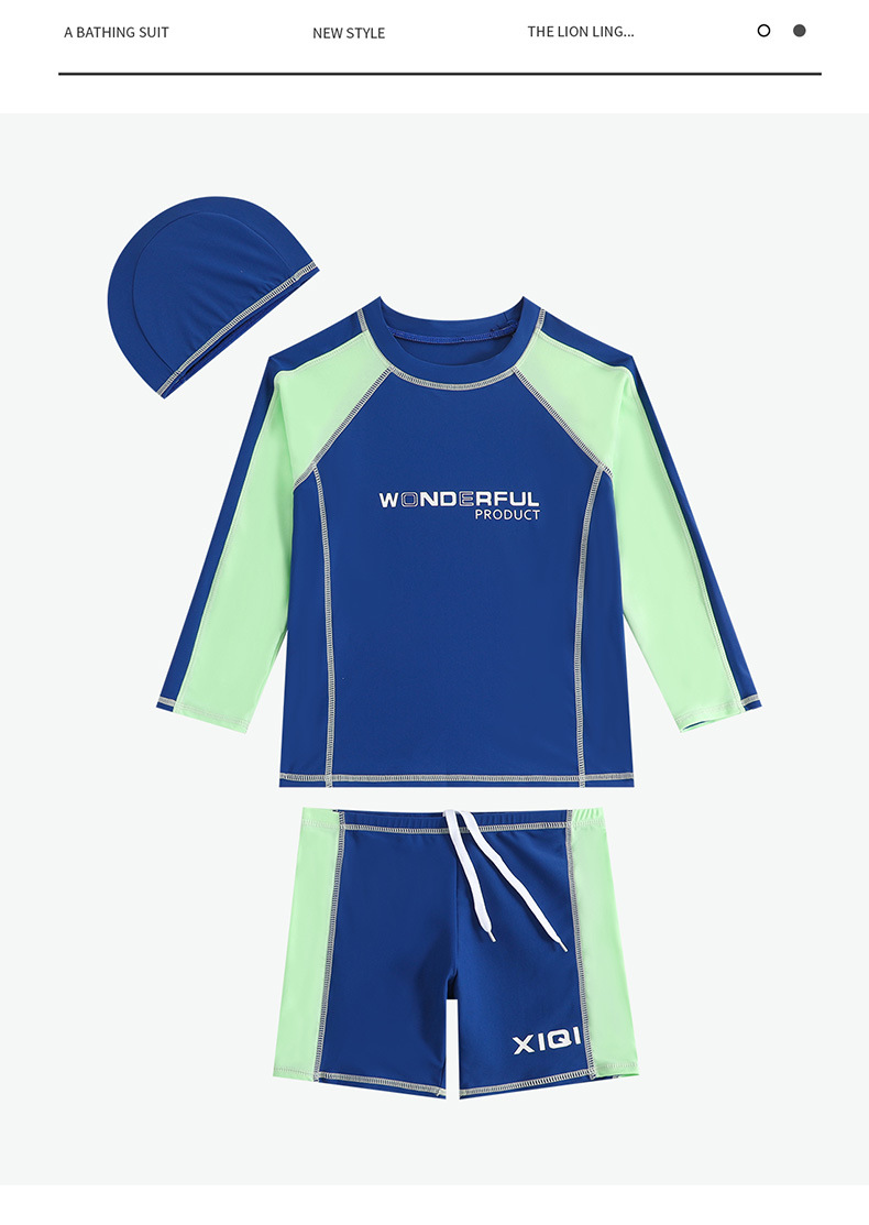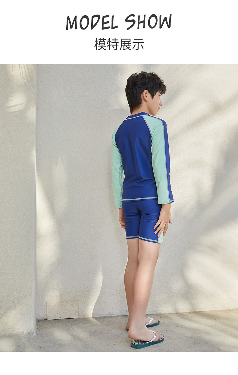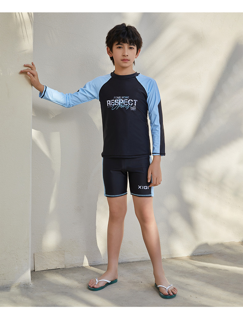 2025 새로운 학생 소년 중 · 대형 어린이 수영복 스포츠 스타일 분할 긴 소매 수영 트렁크 수영 모자 세트 주니어스토어 가기