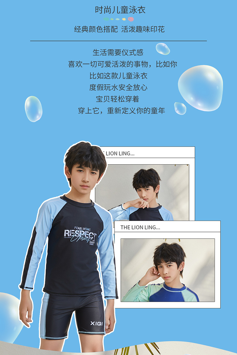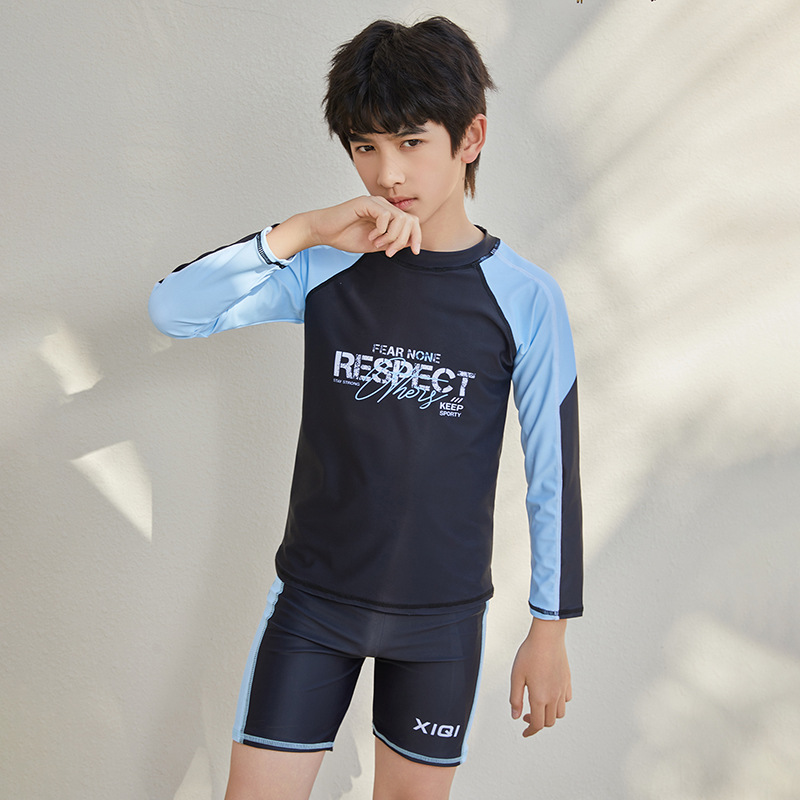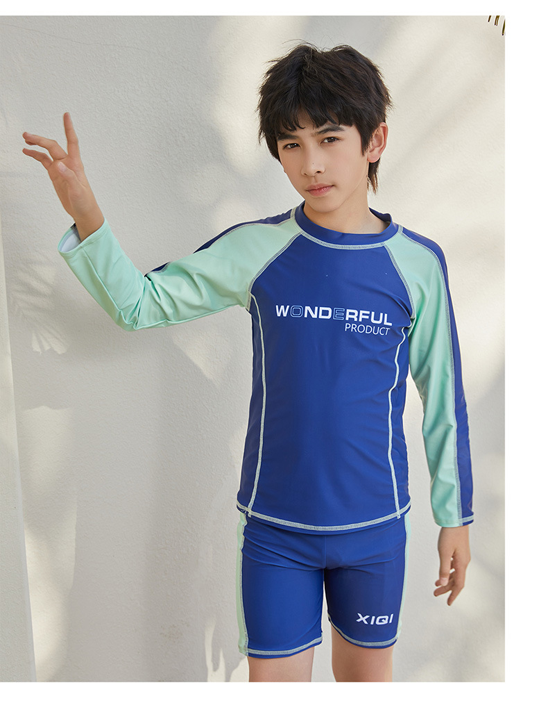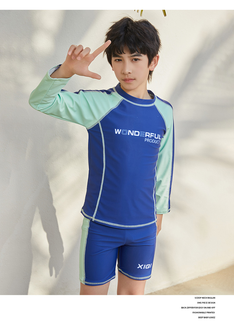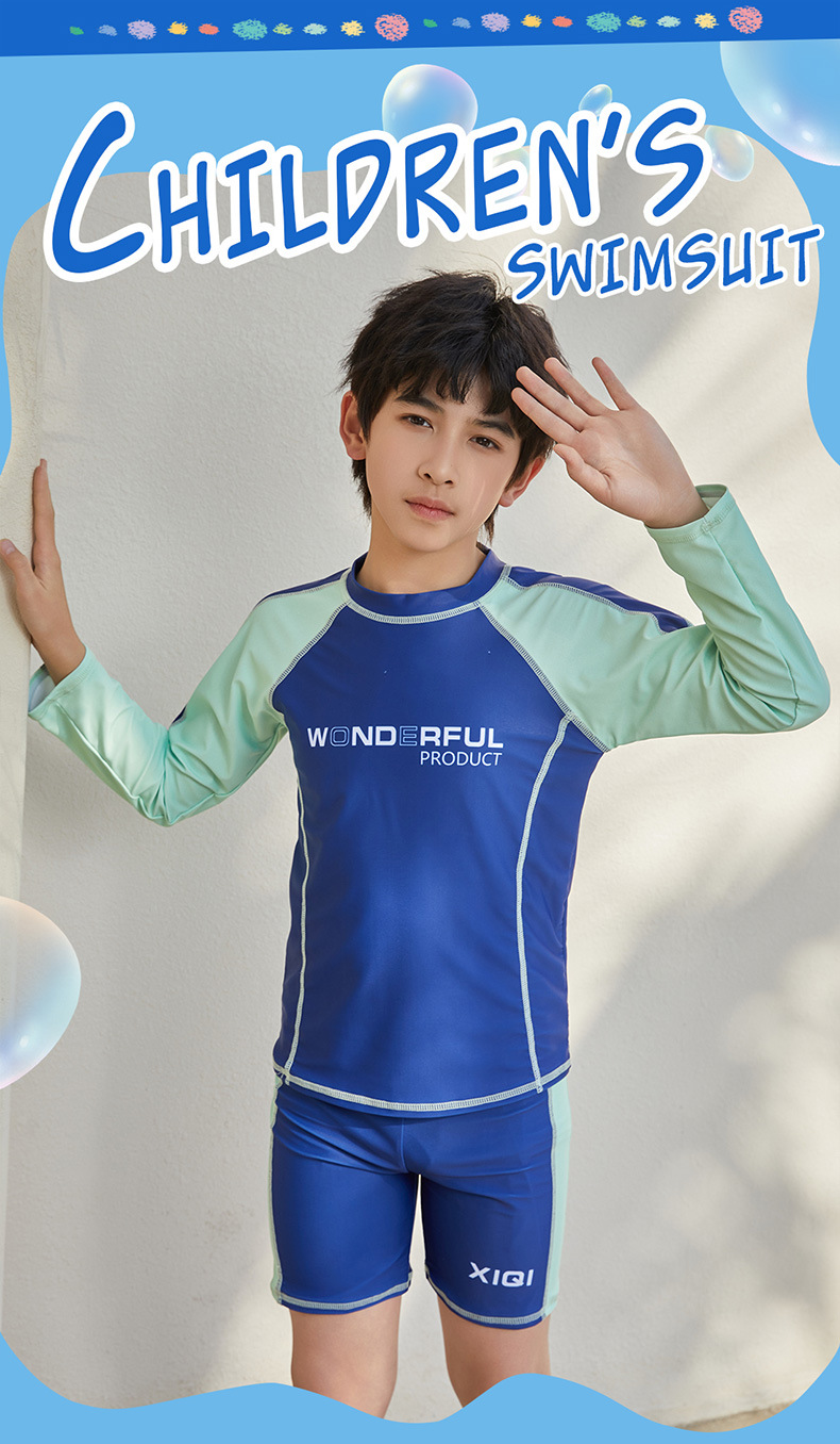 2025 새로운 학생 소년 중 · 대형 어린이 수영복 스포츠 스타일 분할 긴 소매 수영 트렁크 수영 모자 세트 주니어