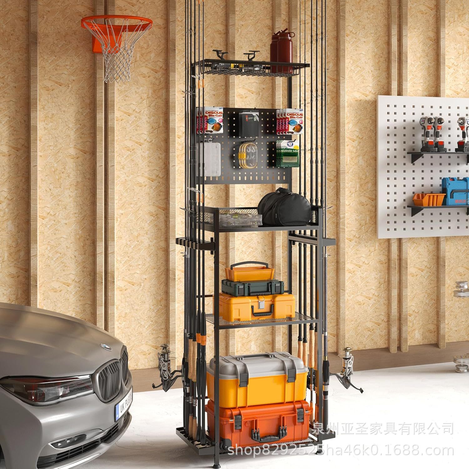 아마존 다기능 낚싯대 보관 랙 다층 보관 랙 창고 도구 낚시 장비 보관 랙