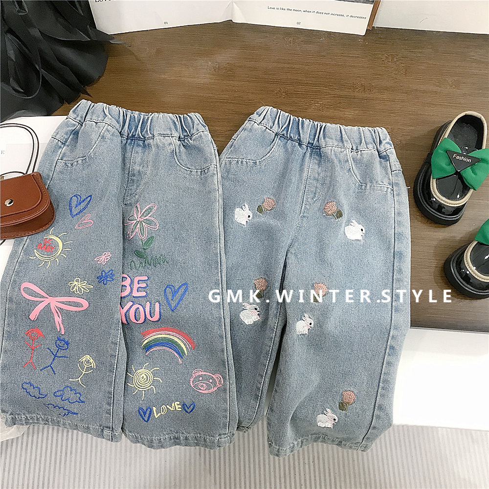 여아 바지 봄, 가을 아동 청바지 새로운 스타일 여아 스트레이트 팬츠 베이비 가을 캐주얼 바지 대외 무역스토어 가기