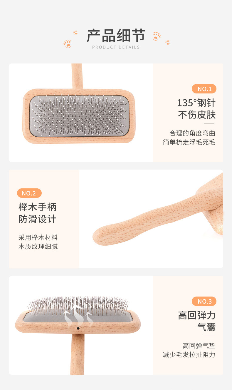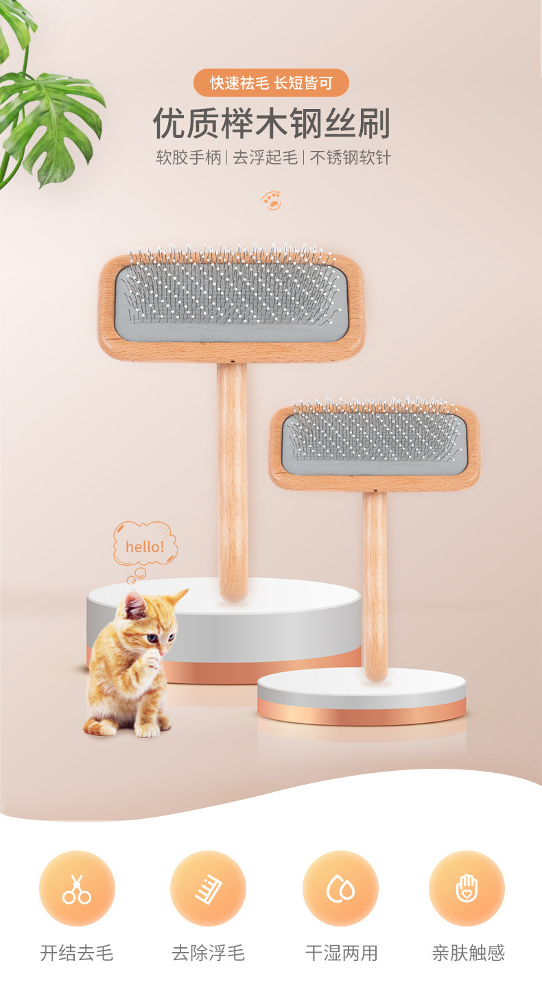 애완동물 빗 나무 바늘 빗 털 제거 마사지 테디 고양이 강아지 브러시 털 제거 대형견 탈모