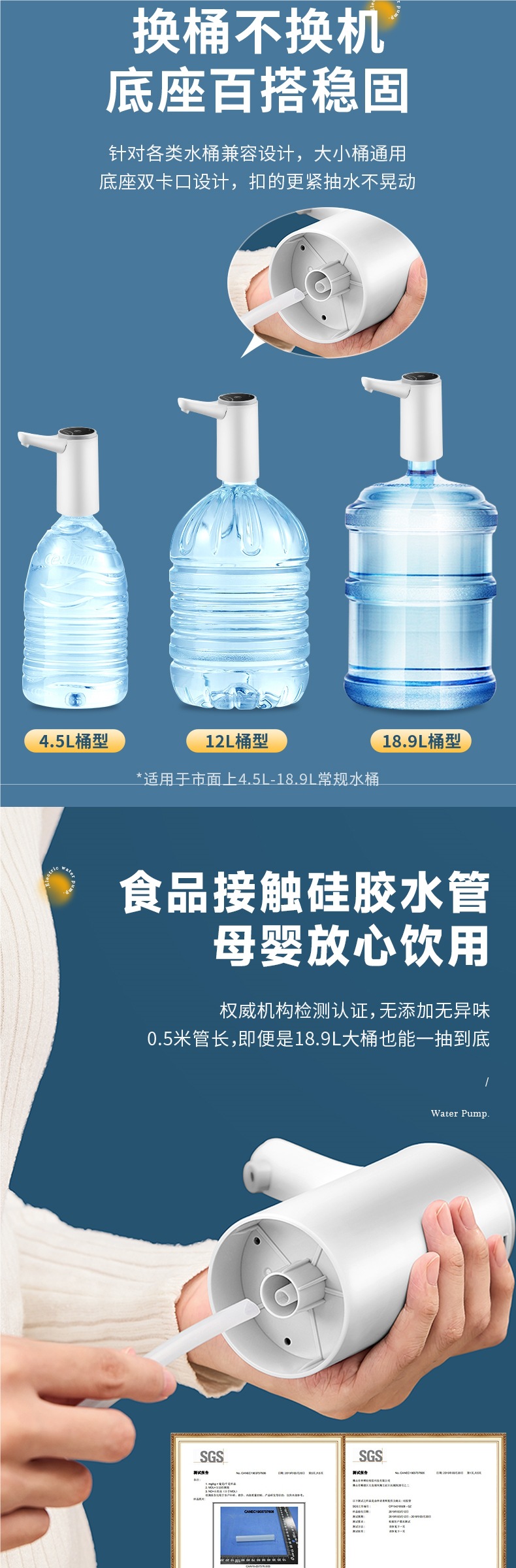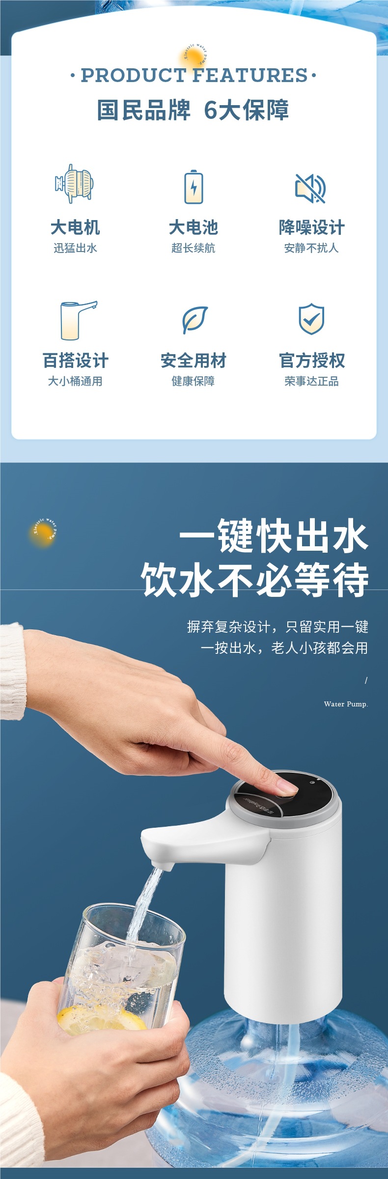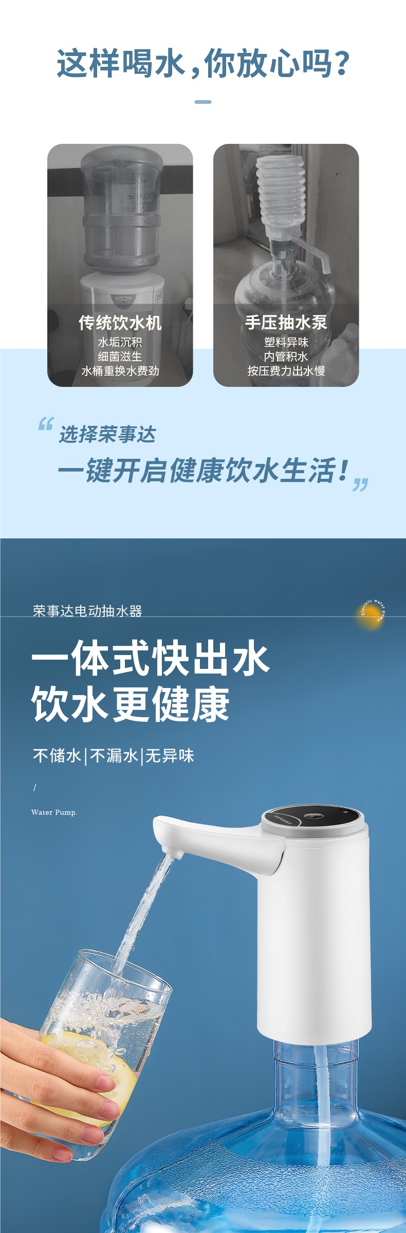 Rongshida Barreled Water Pumper 전기 물 디스펜서 큰 배럴 물 빼기 미네랄 워터 수압 물 흡수 인공물