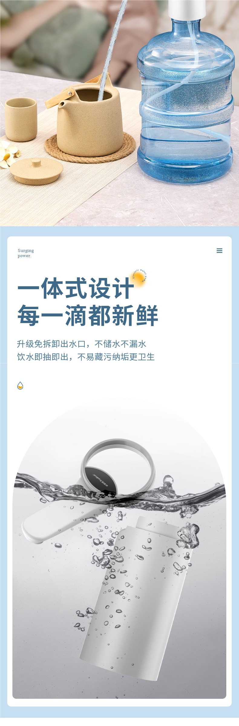 • 일체형 듀얼 펌프 [이중 물 출력 + 매우 긴 배터리 수명]