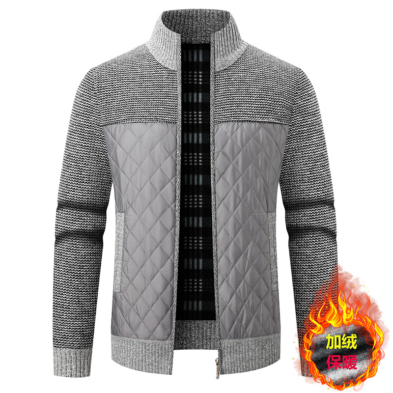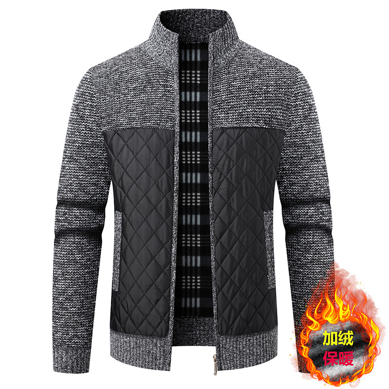 대외 무역 남자 스탠드 칼라 기모 두꺼운 가을과 겨울 면화 따뜻한 스웨터 코트 남성 긴팔 카디건 스웨터