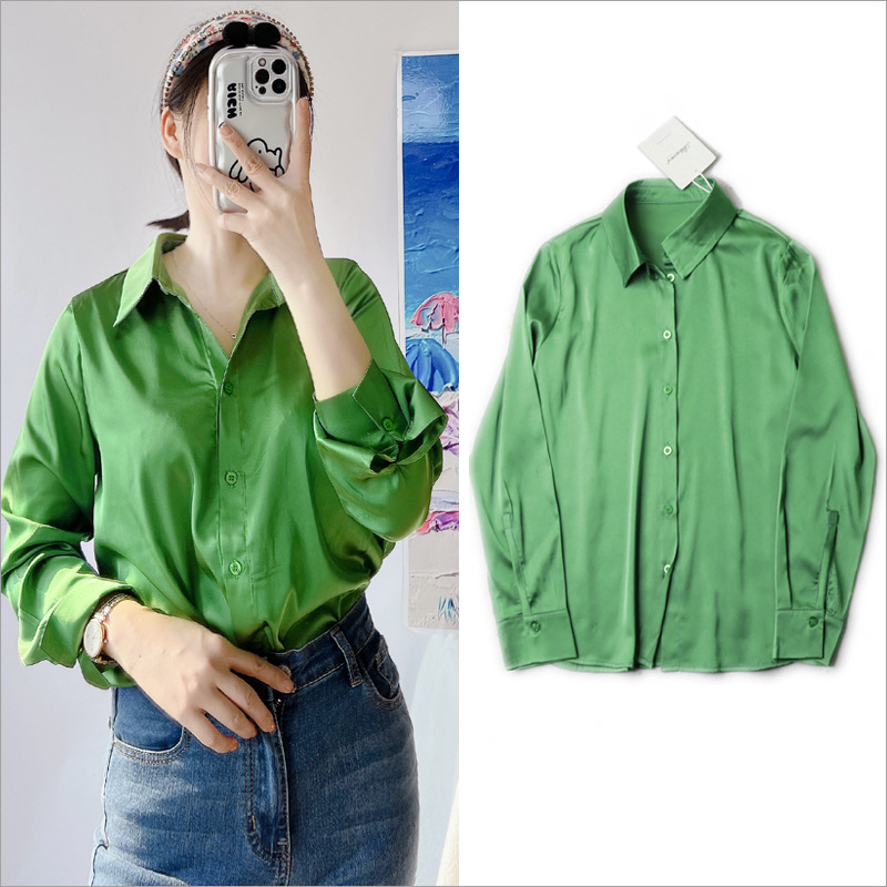 봄 여름 신작 Liu Yifei 스타일 싱글 브레스트 라펠 캐주얼 루즈 셔츠 탑
