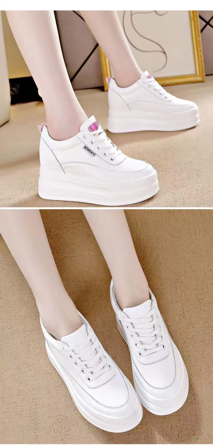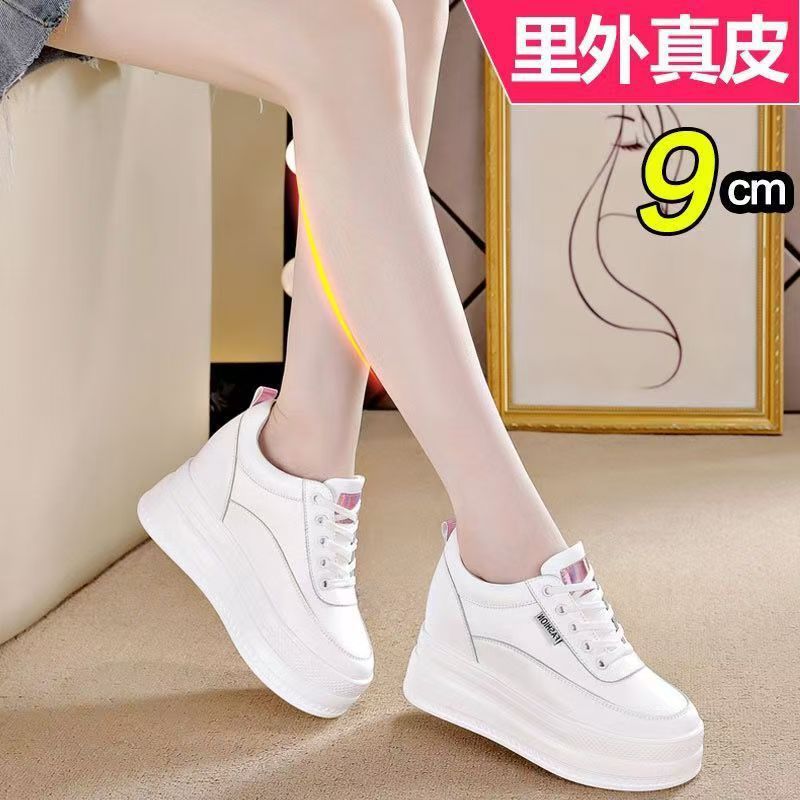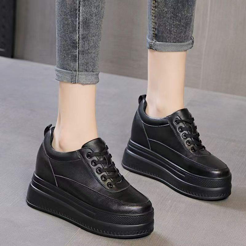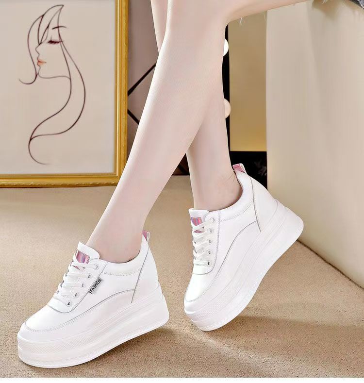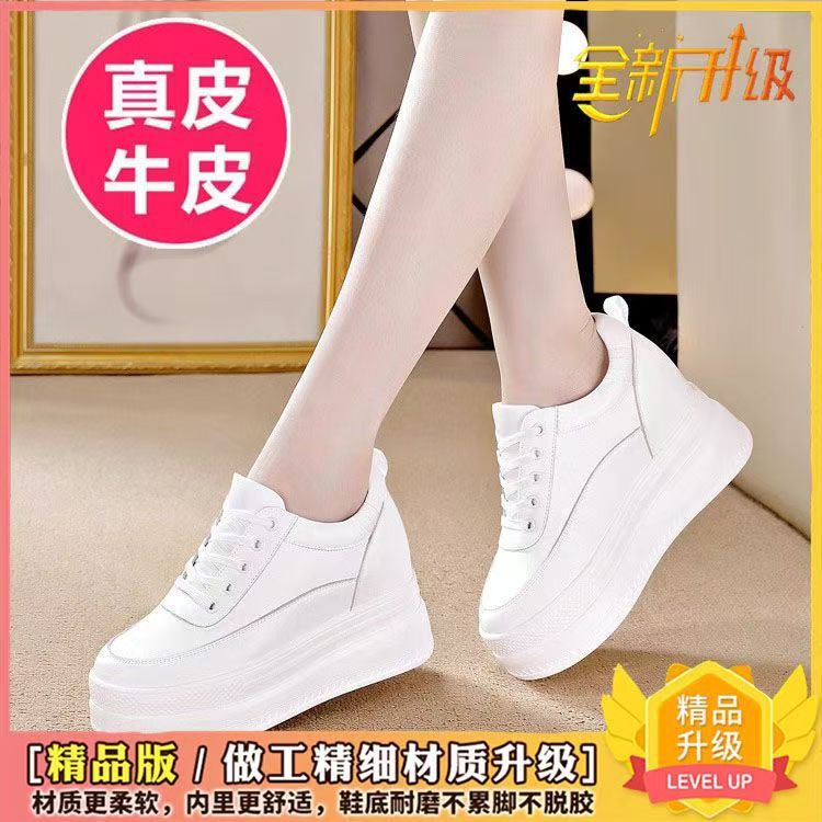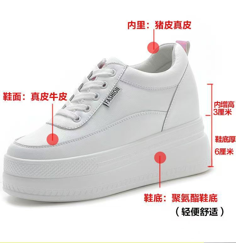 순가죽 키높이 여성화 8cm 키높이 천연가죽 봄가을 단화 키 작은 분들을 위한 플랫폼 슈즈 두꺼운 밑창 흰색 신발
