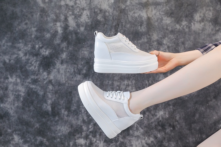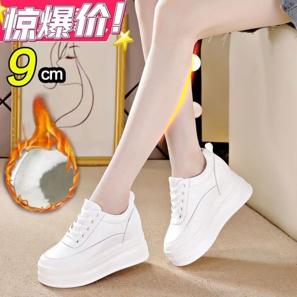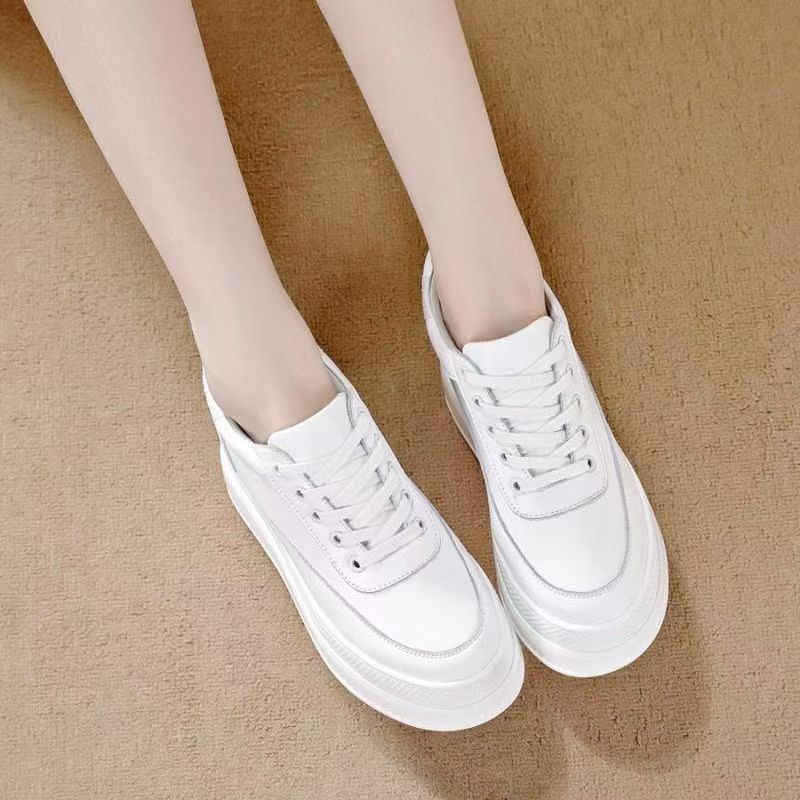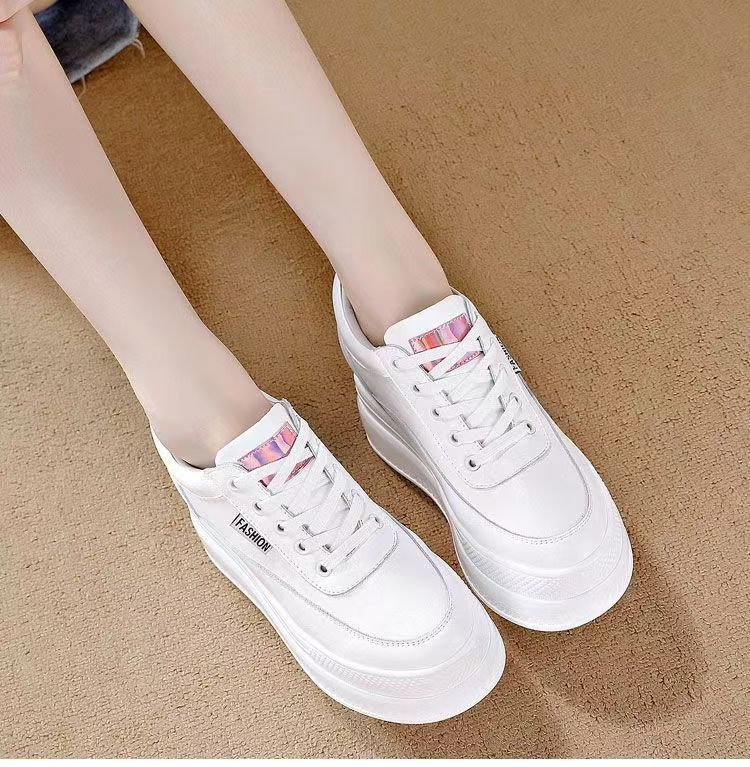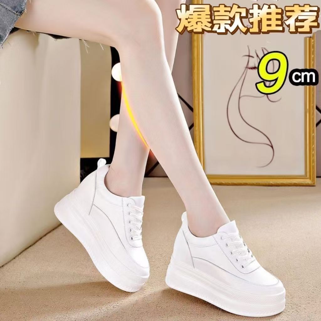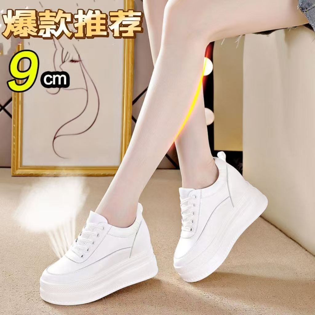 순가죽 키높이 여성화 8cm 키높이 천연가죽 봄가을 단화 키 작은 분들을 위한 플랫폼 슈즈 두꺼운 밑창 흰색 신발