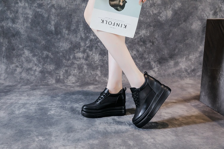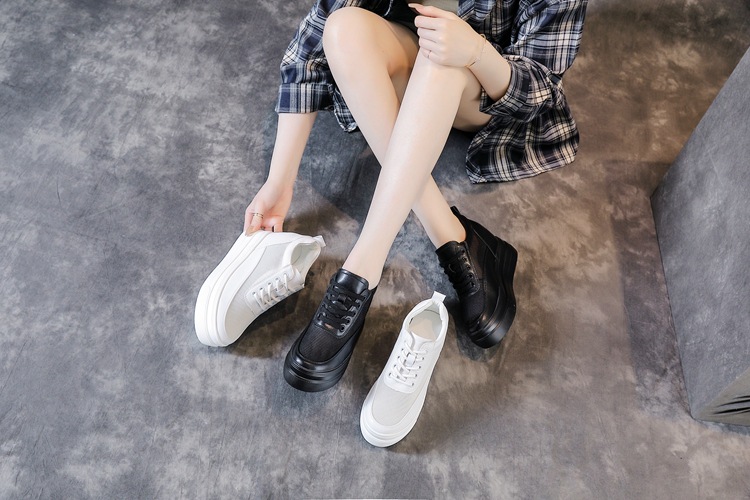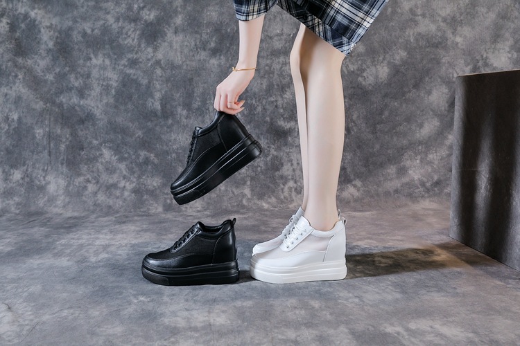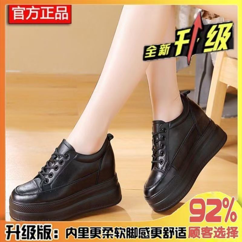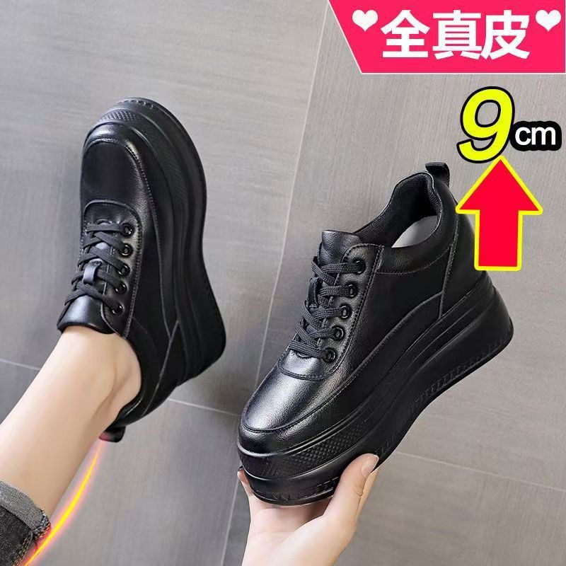 순가죽 키높이 여성화 8cm 키높이 천연가죽 봄가을 단화 키 작은 분들을 위한 플랫폼 슈즈 두꺼운 밑창 흰색 신발스토어 가기
