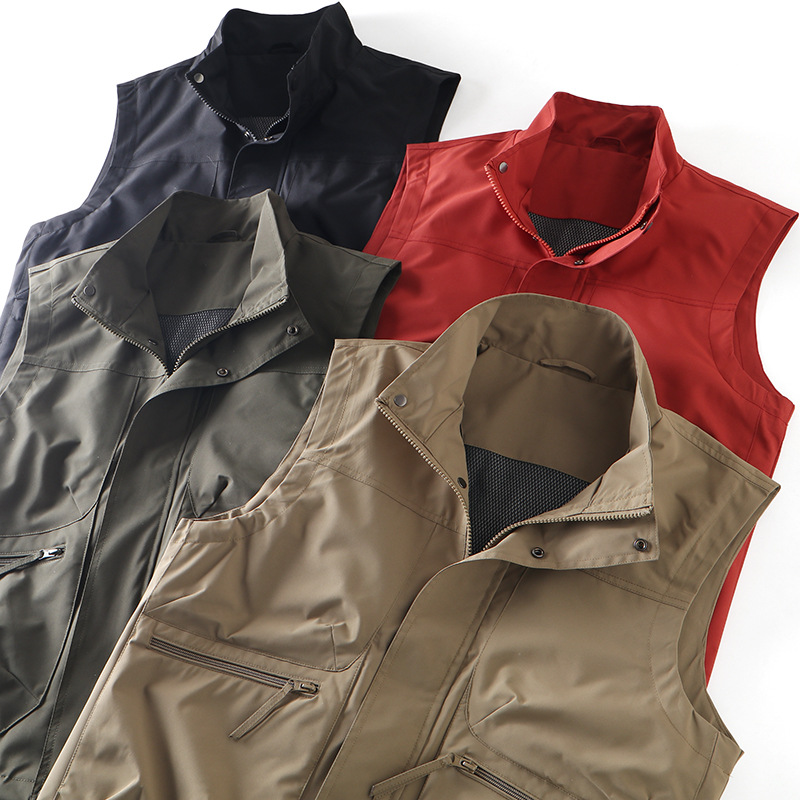 야외 봄과 여름 남성 방수 솔리드 컬러 올 매치 다기능 멀티 포켓 작업복 캐주얼 낚시 등산 조끼스토어 가기
