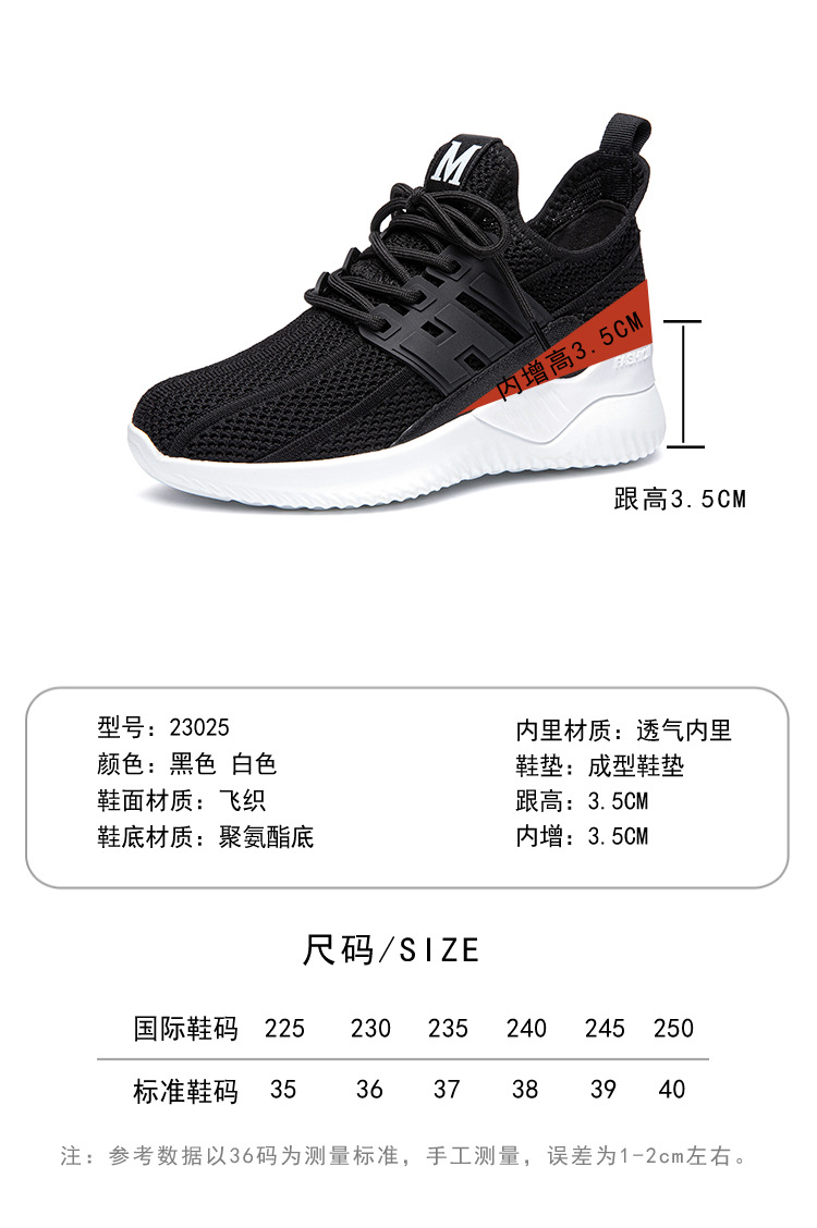 보이지 않는 내부 높이 증가 여성 신발 2025 봄 새로운 할로우 통기성 캐주얼 매일 니트 풀 메쉬 통기성 메쉬 신발