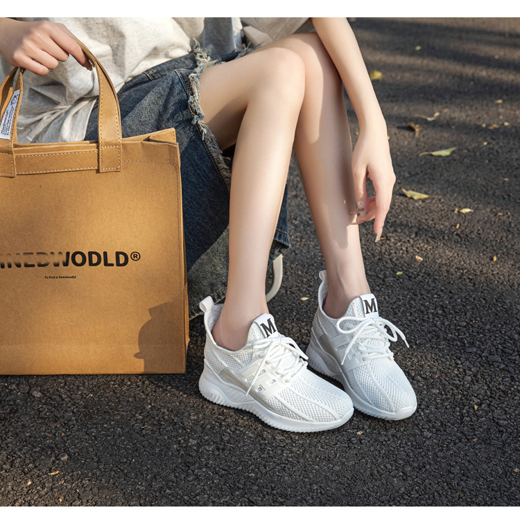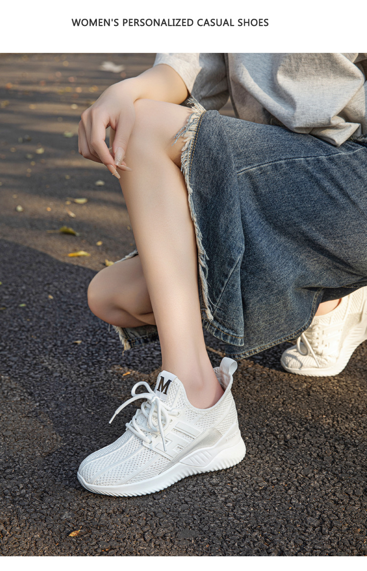 보이지 않는 내부 높이 증가 여성 신발 2025 봄 새로운 할로우 통기성 캐주얼 매일 니트 풀 메쉬 통기성 메쉬 신발스토어 가기